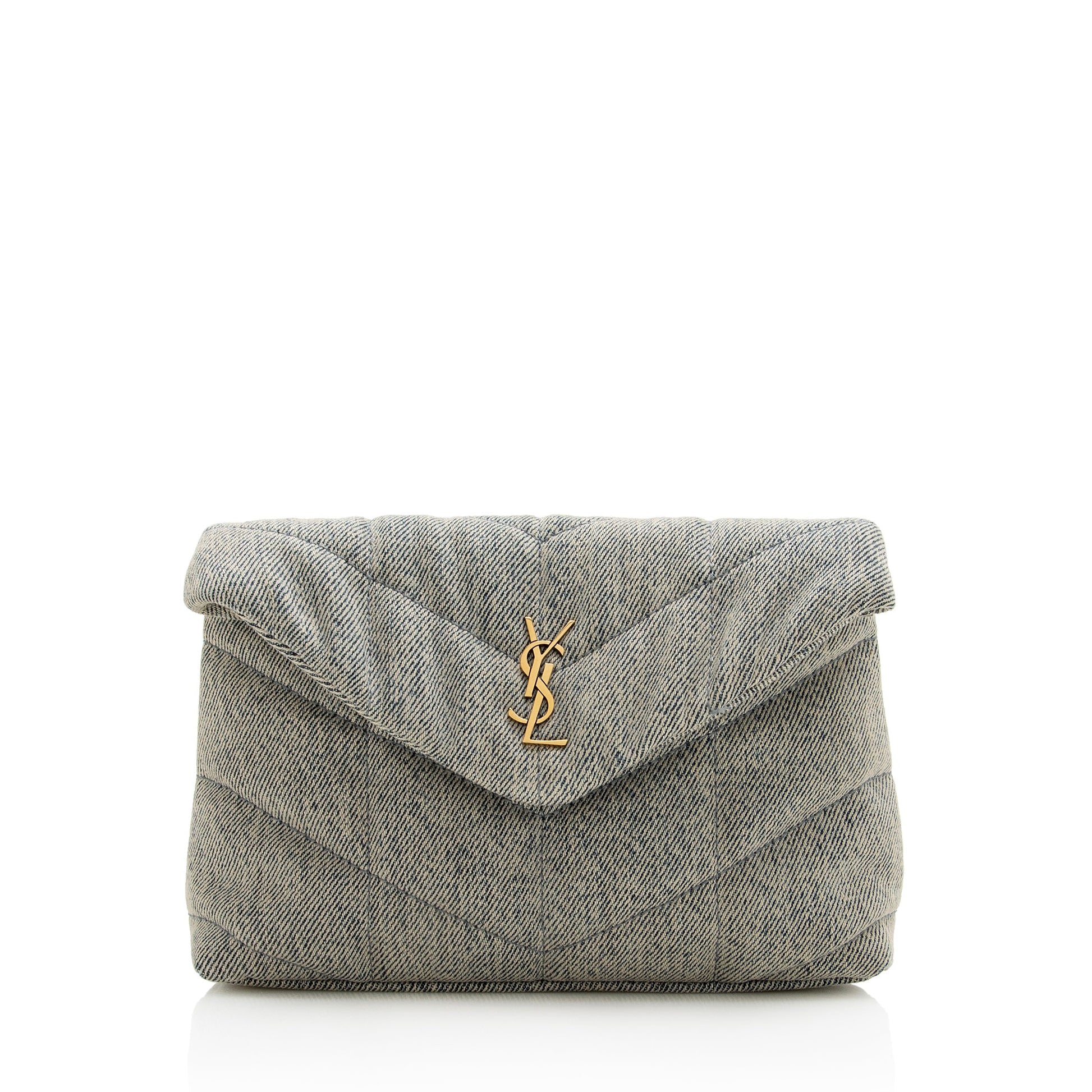 Saint Laurent Denim Monogram Puffer LouLou Small Clutch (SHF-22918)