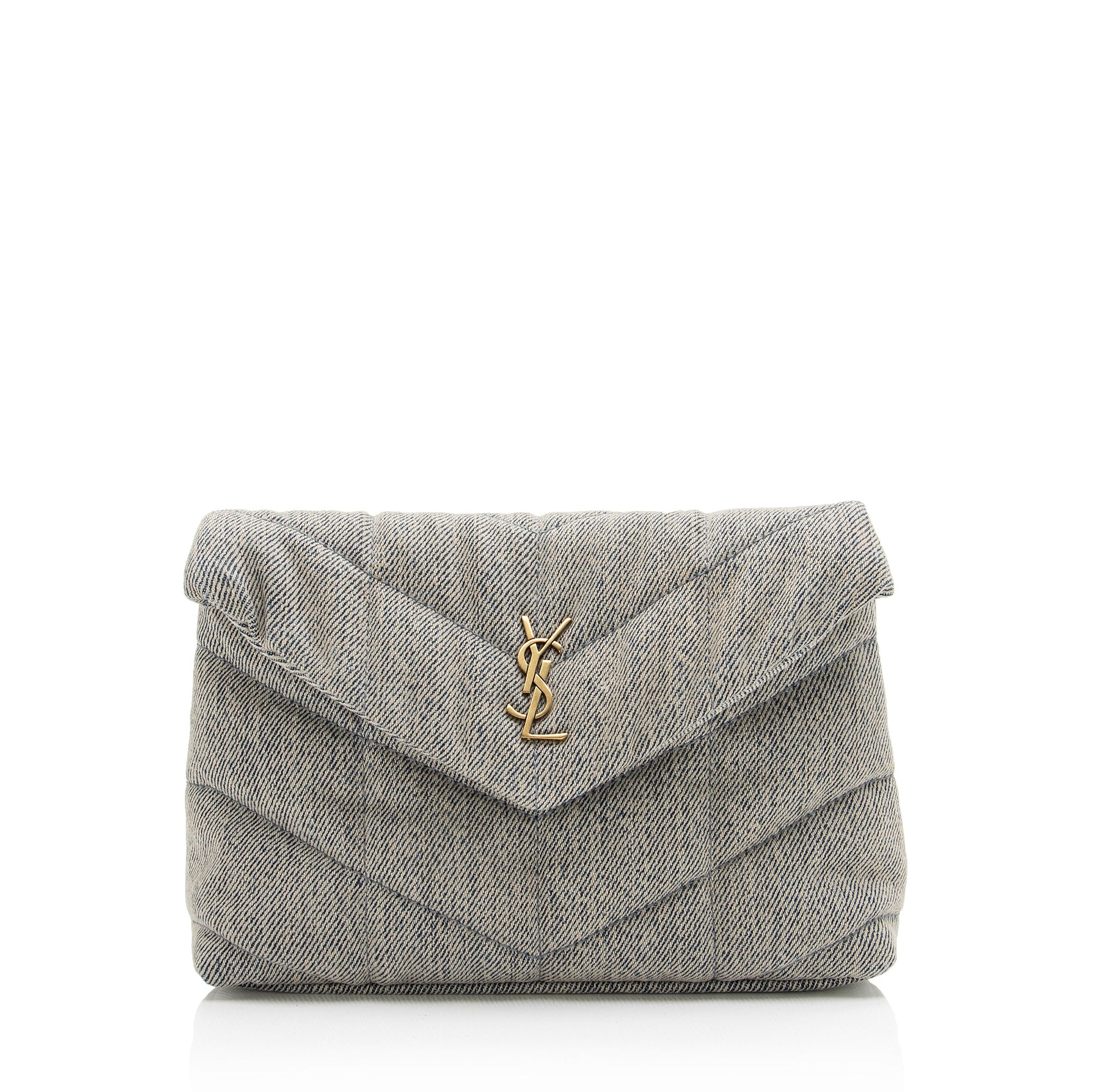 Saint Laurent Denim Monogram Puffer LouLou Small Clutch (SHF-23055)