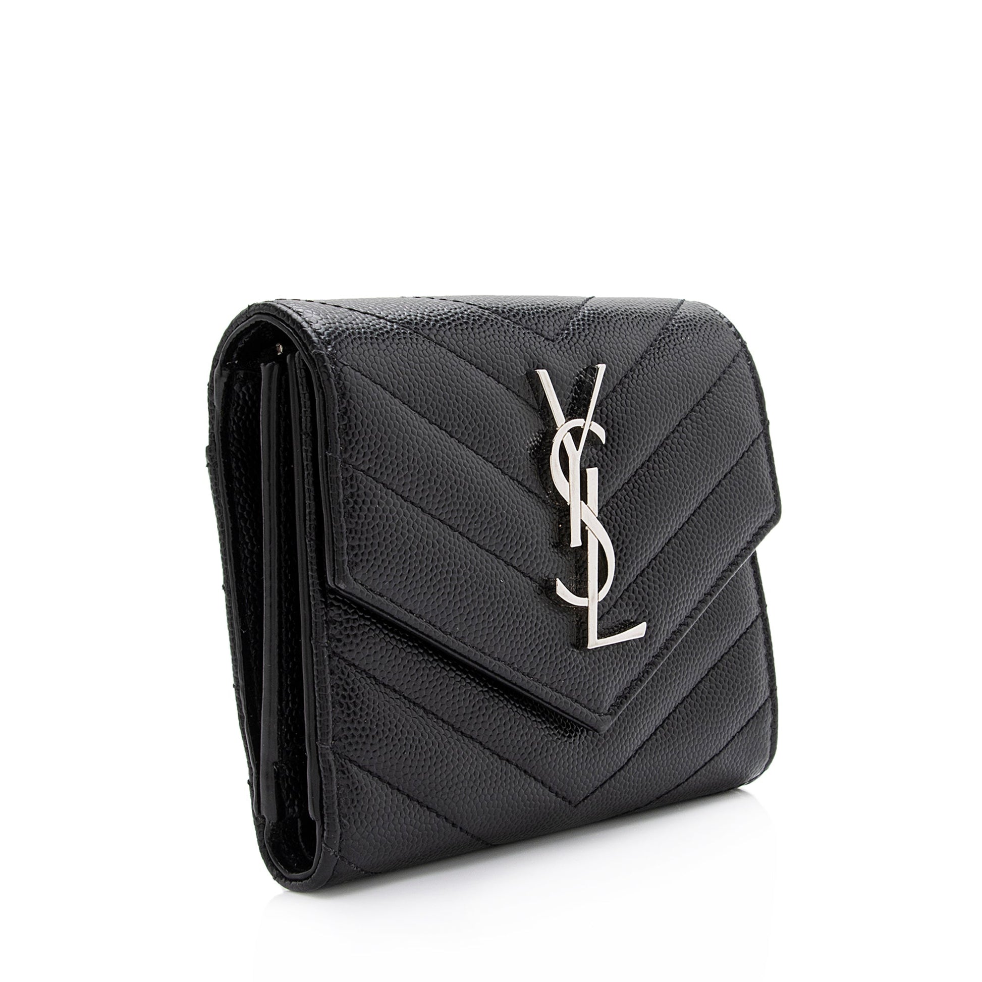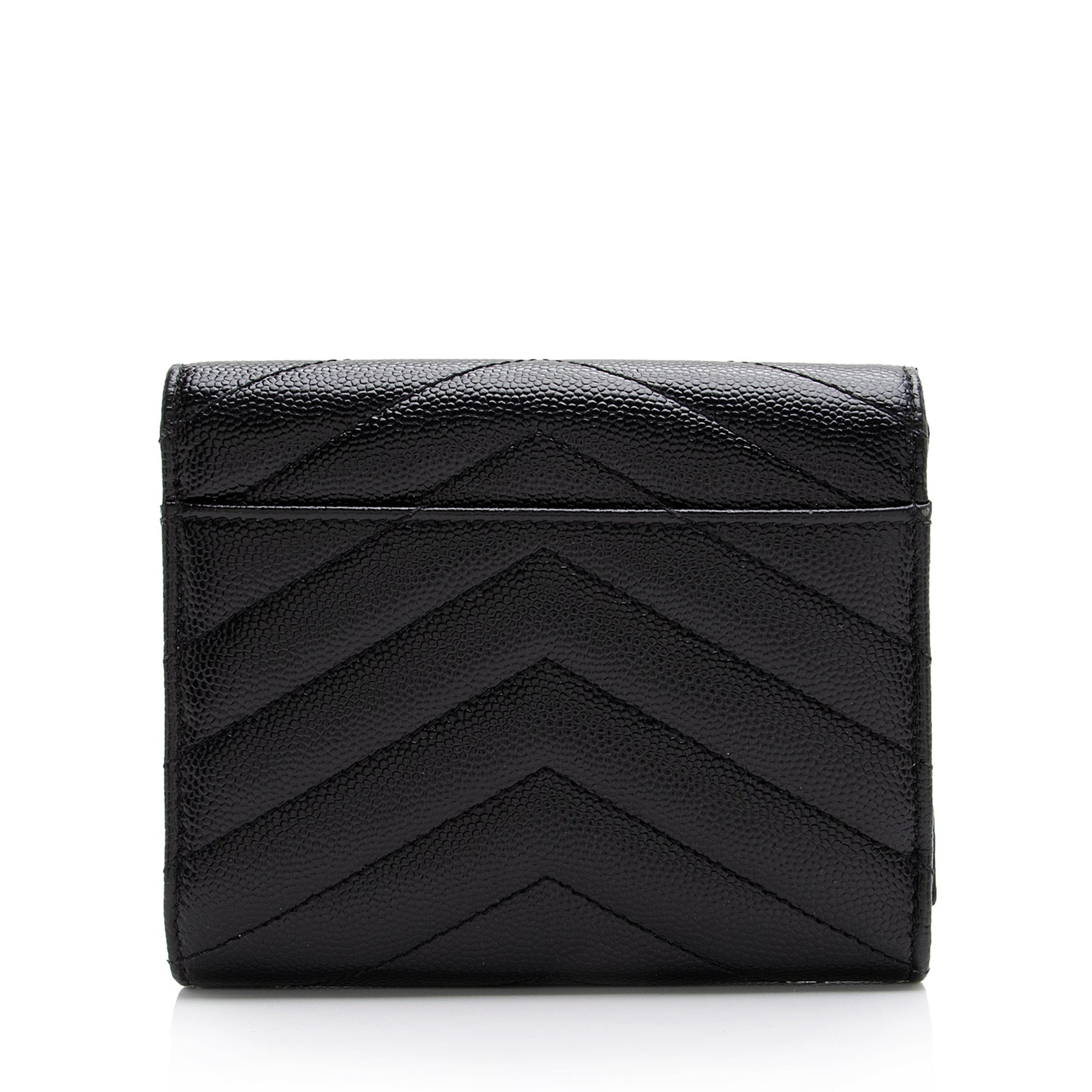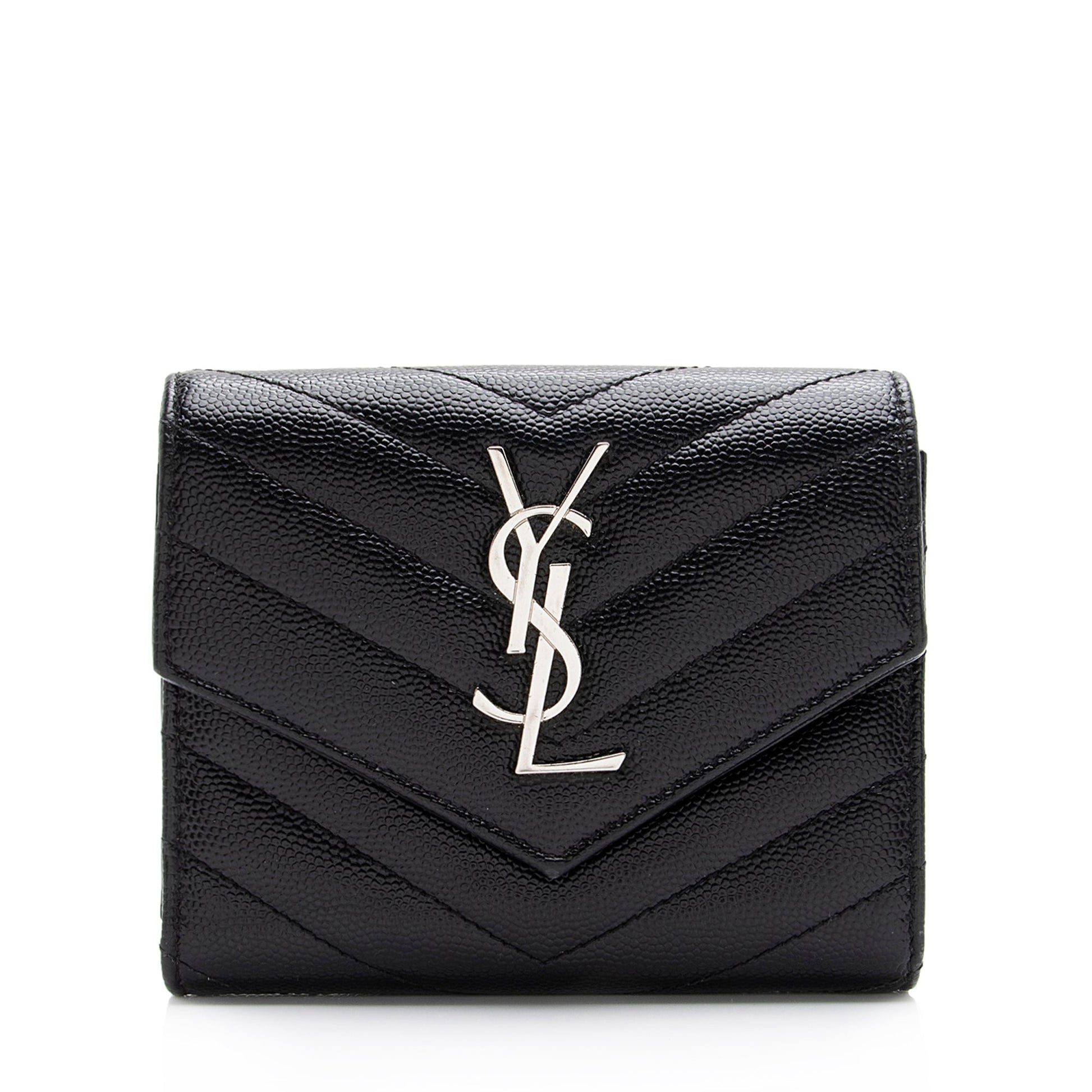 Saint Laurent Grain de Poudre Monogram Compact Tri-Fold Wallet (SHF-23574)
