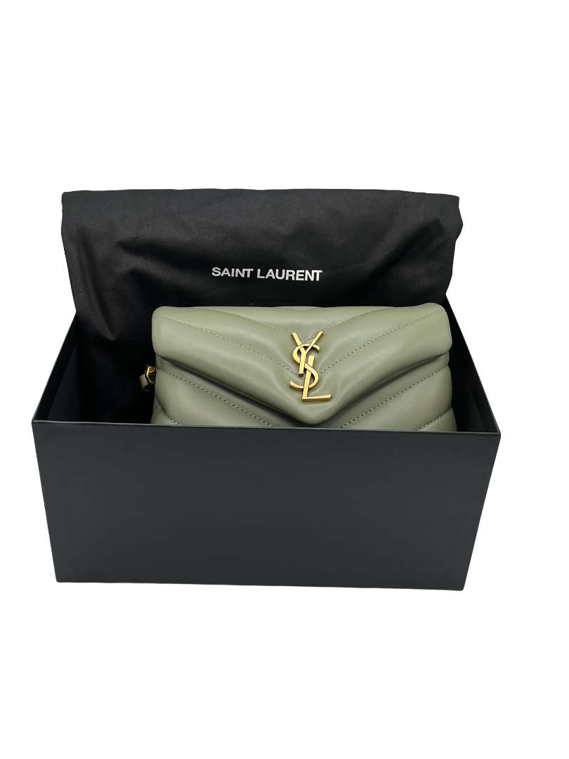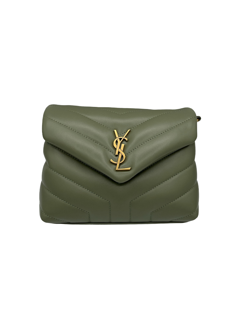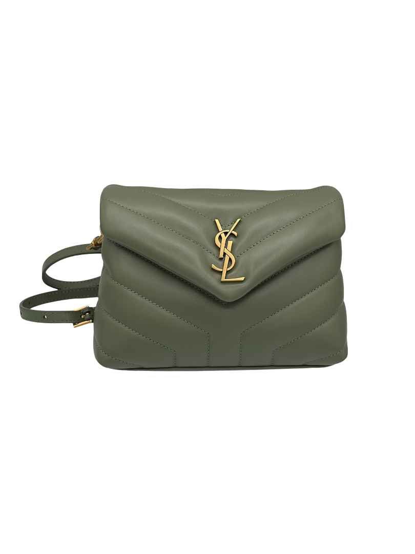 SAINT LAURENT- Green Calfskin Quilted Monogram Toy Loulou Satchel