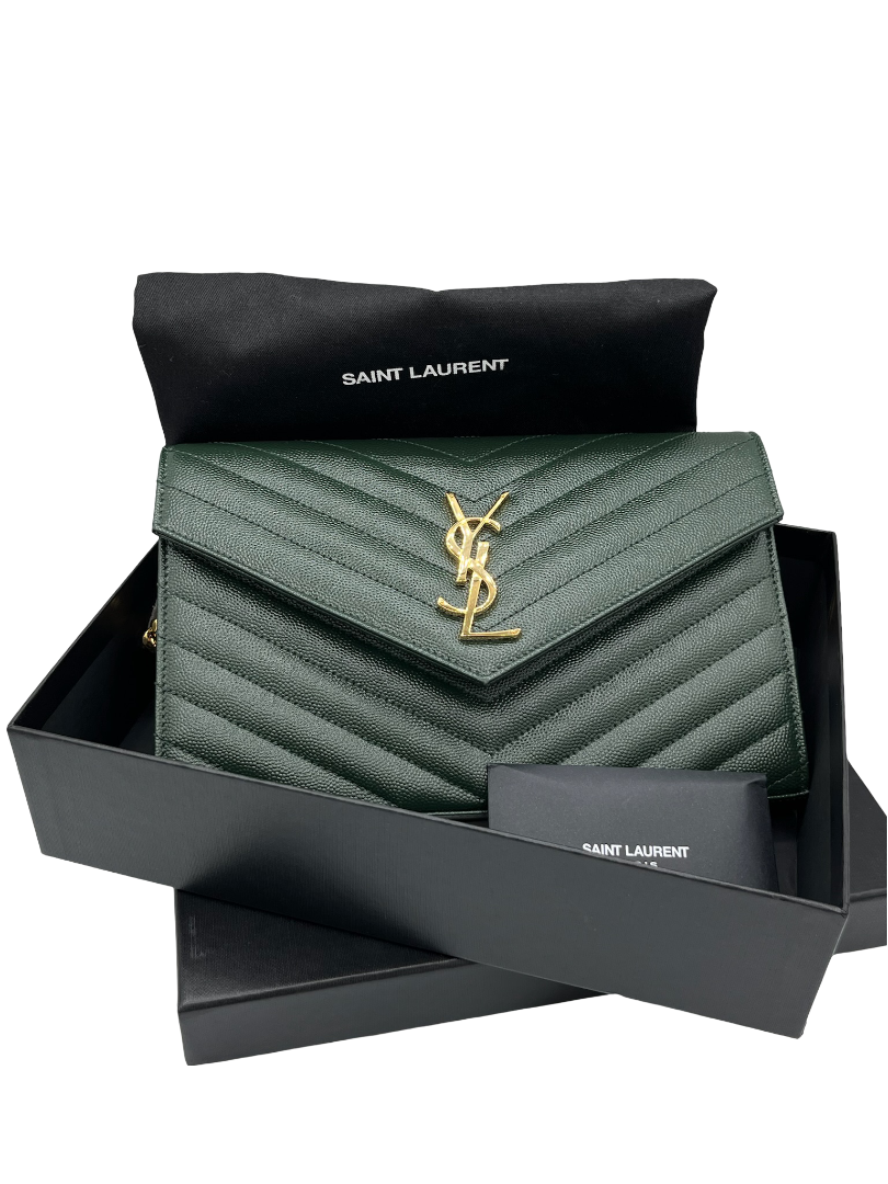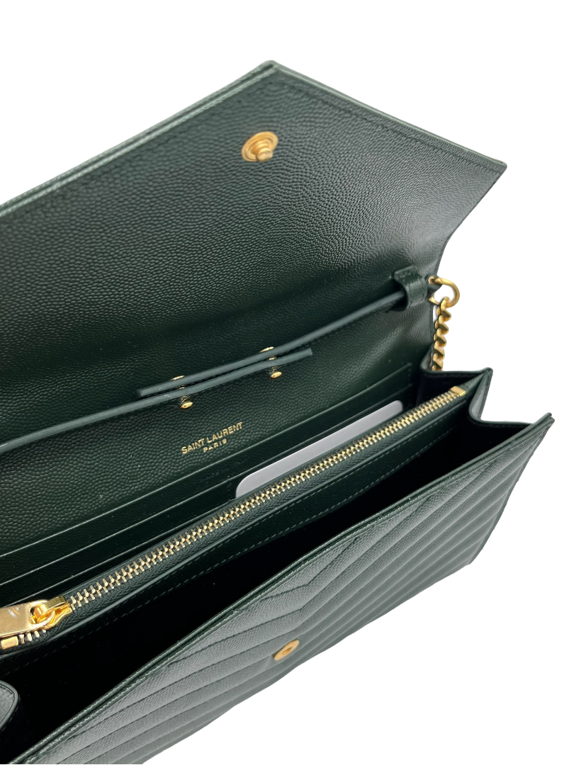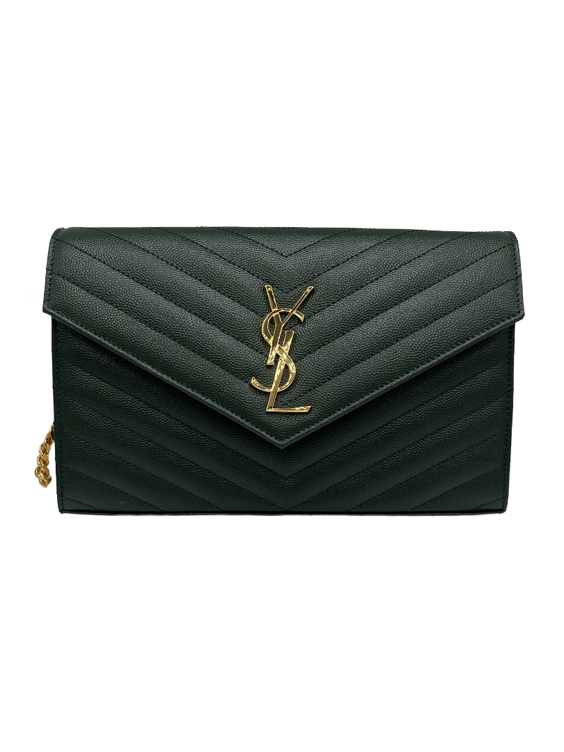 SAINT LAURENT - Green Envelope WOC Grain de Poudre Leather