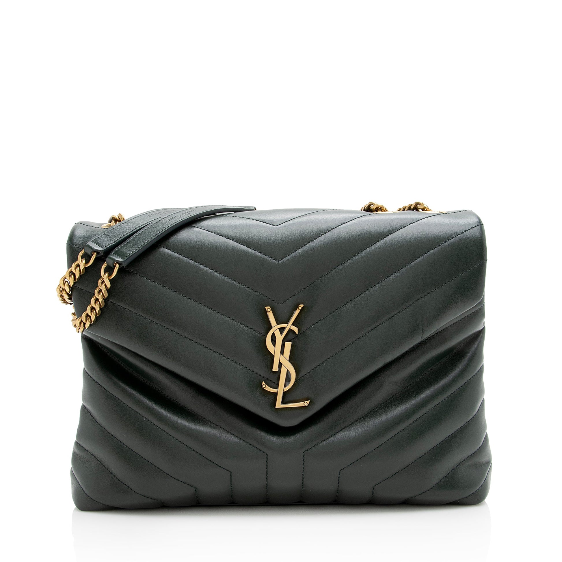 Saint Laurent Matelasse Calfskin Monogram LouLou Chain Medium Shoulder Bag (SHF-22990)