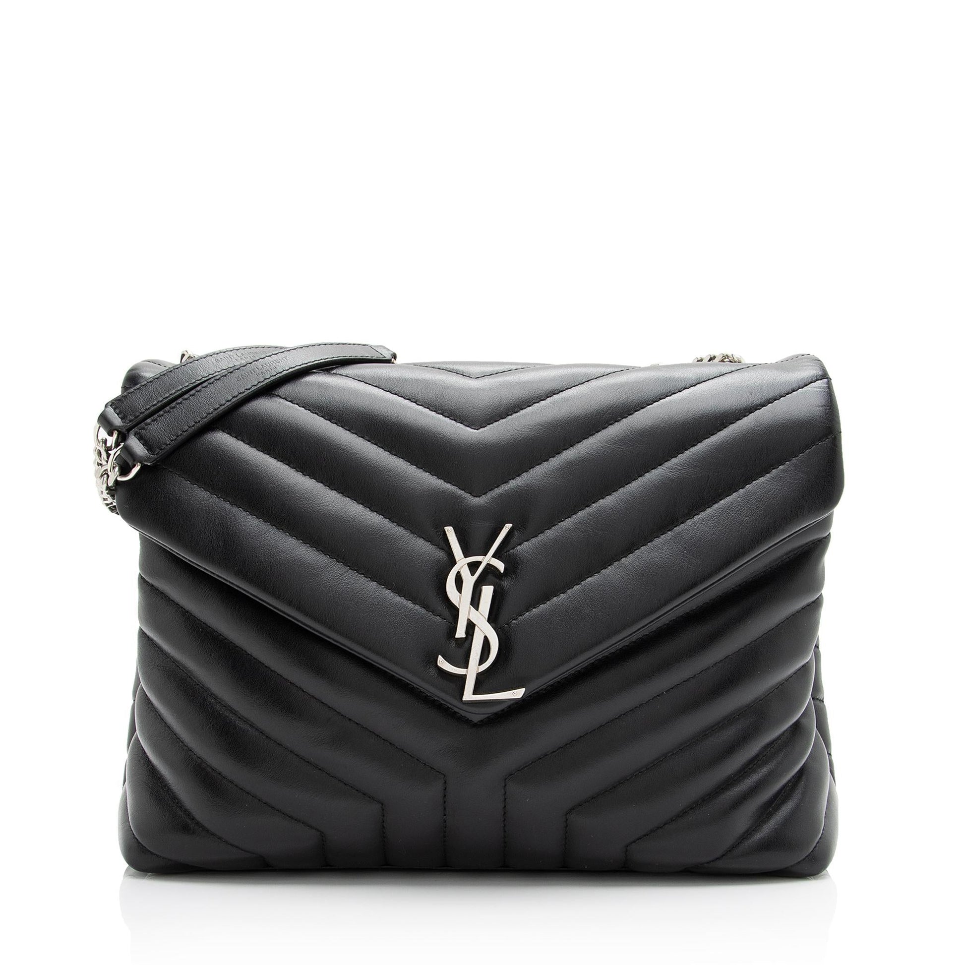 Saint Laurent Matelasse Calfskin Monogram LouLou Chain Medium Shoulder Bag (SHF-23572)