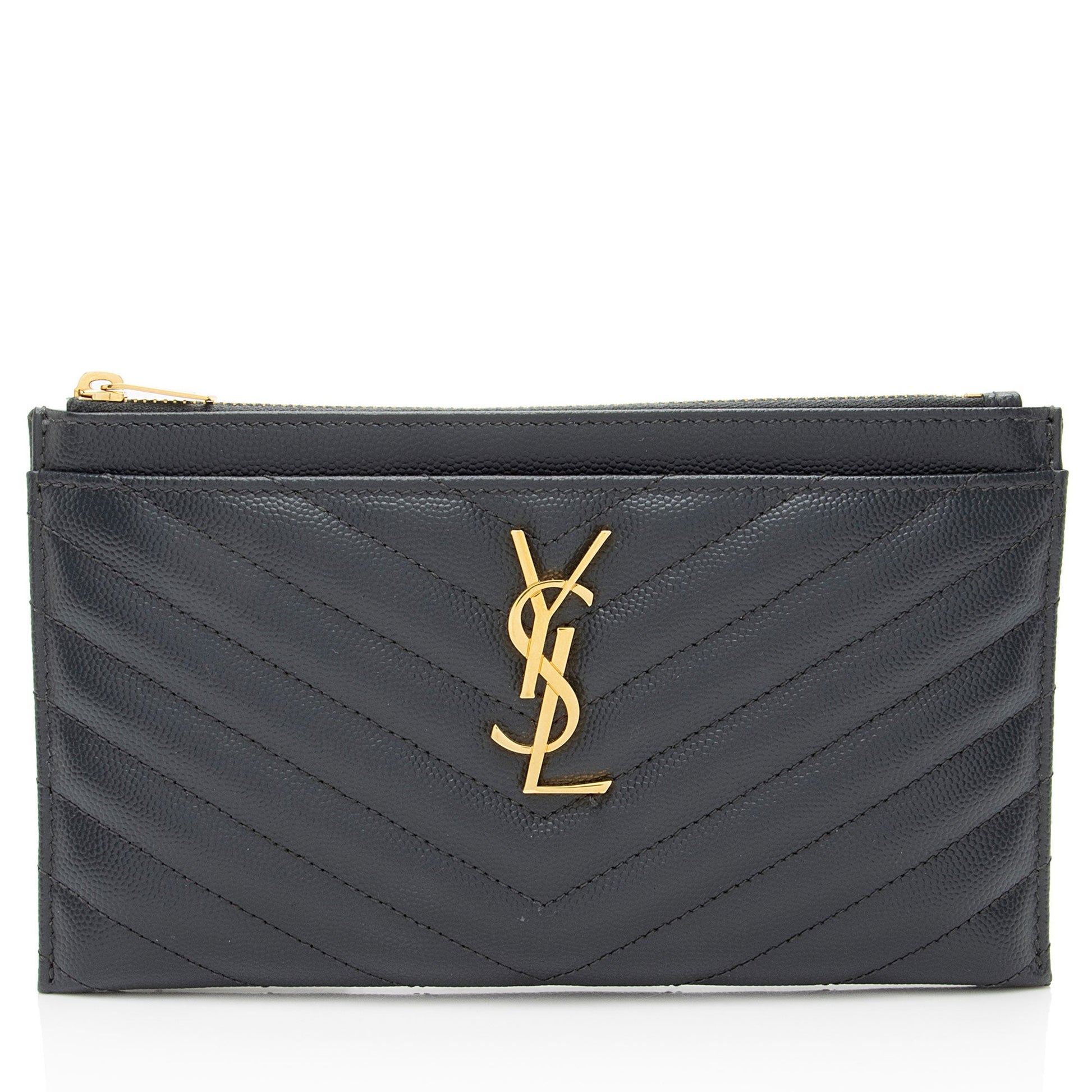 Saint Laurent Matelasse Grain de Poudre Monogram Bill Pouch