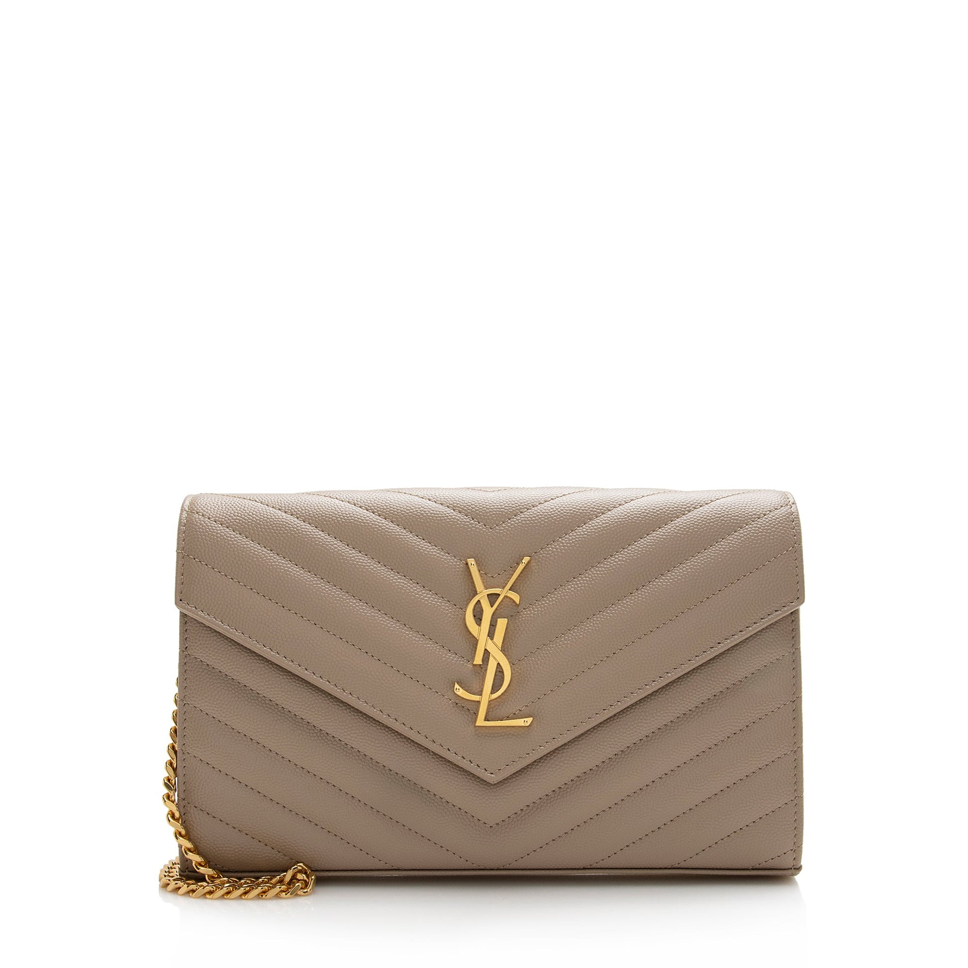 Saint Laurent Matelasse Grain de Poudre Monogram Chain Wallet (SHF-22227)