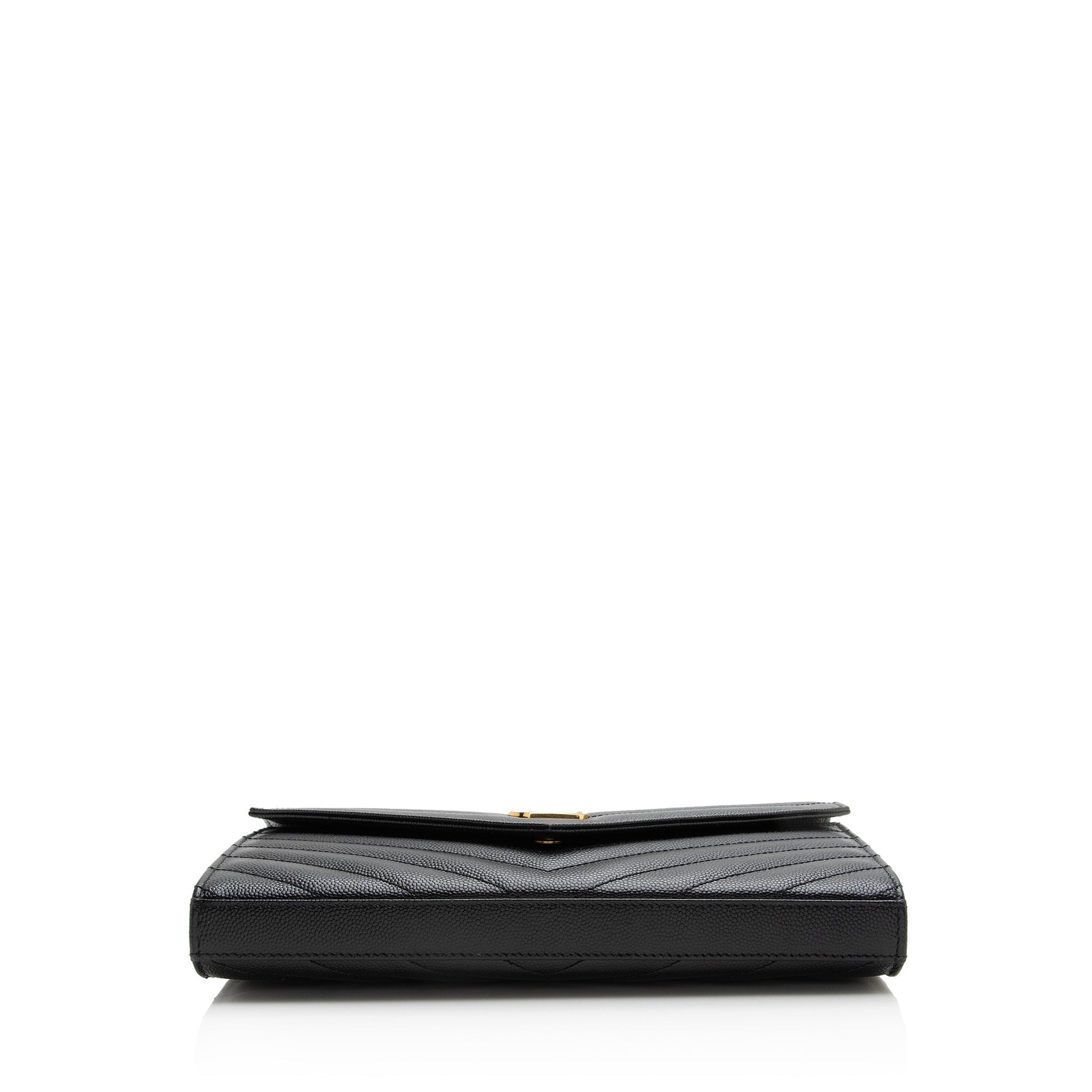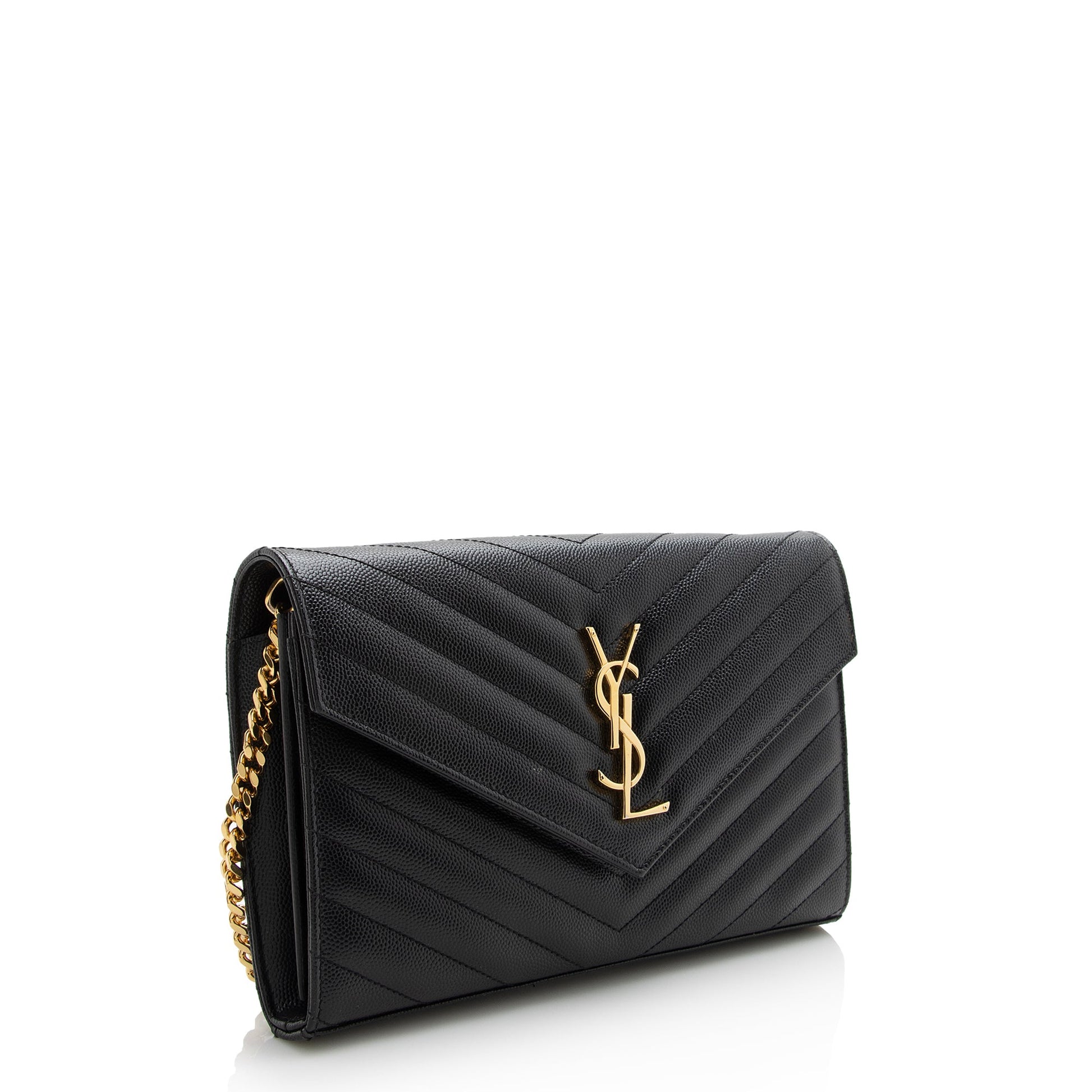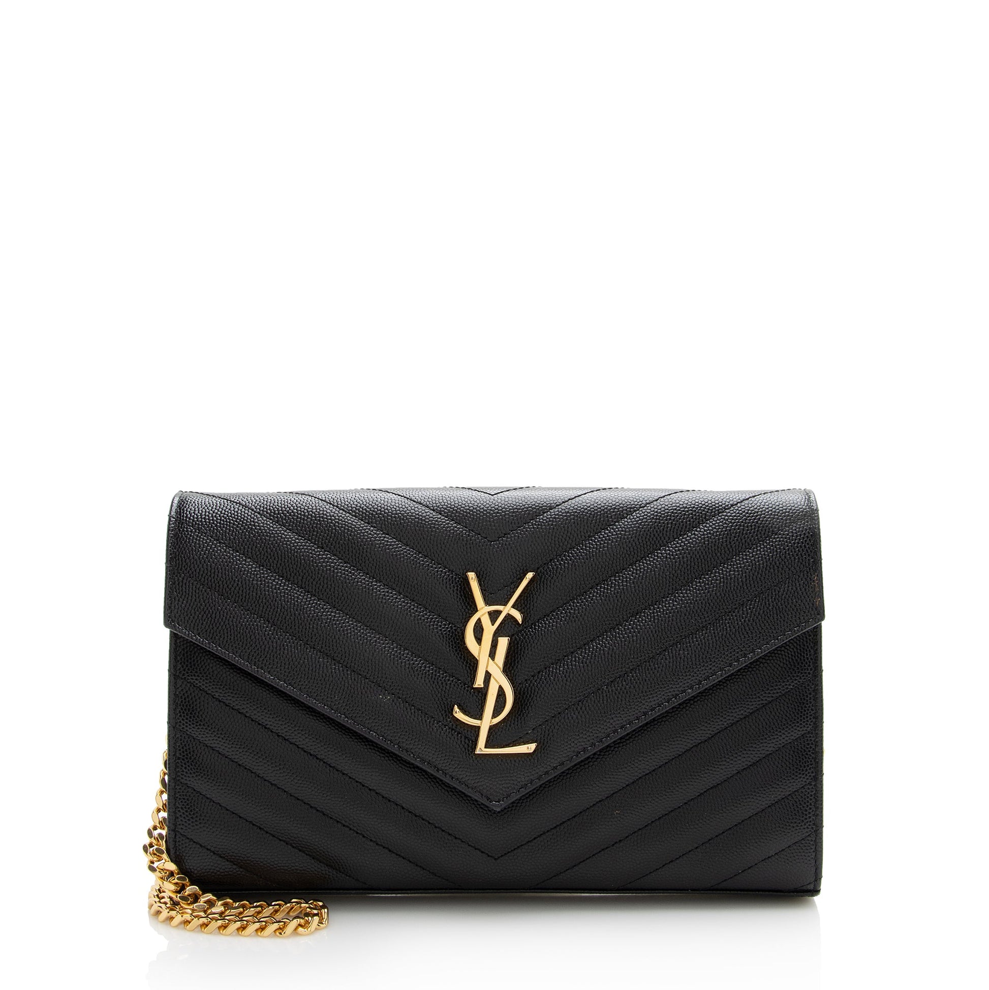Saint Laurent Matelasse Grain de Poudre Monogram Chain Wallet (SHF-22718)