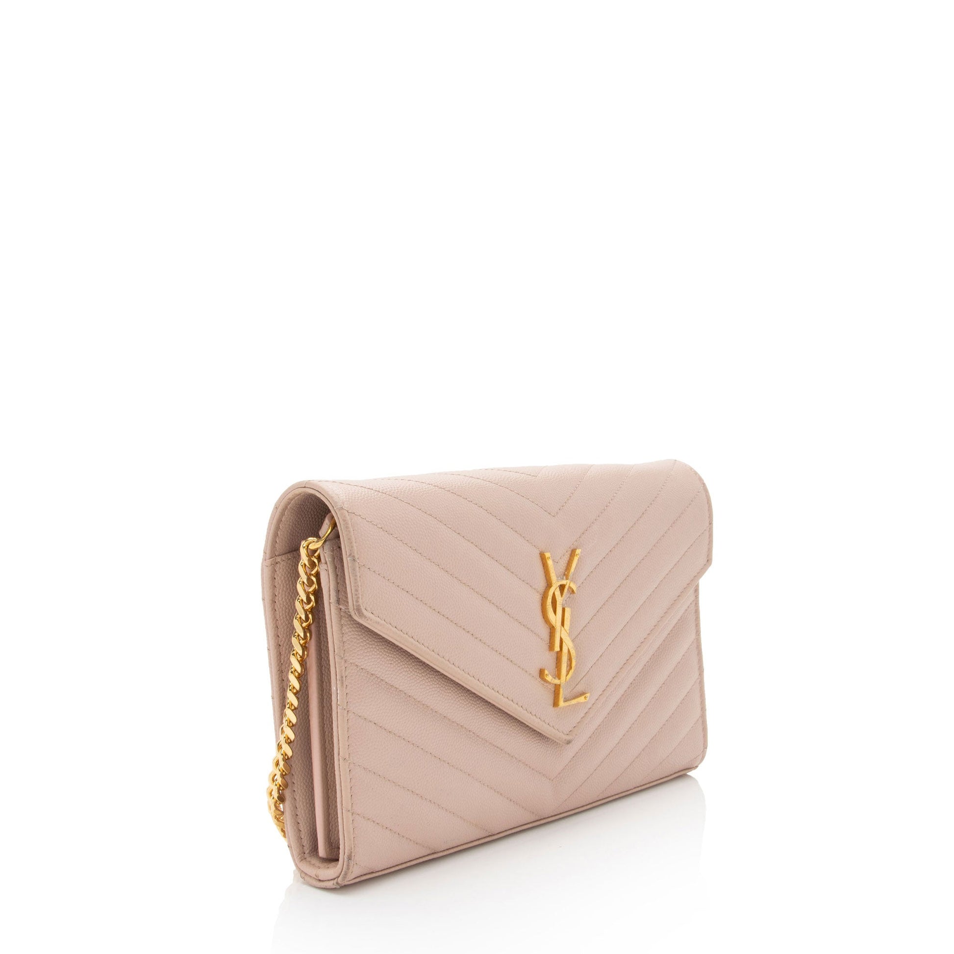 Saint Laurent Matelasse Grain de Poudre Monogram Chain Wallet (SHF-7n2Rsg)