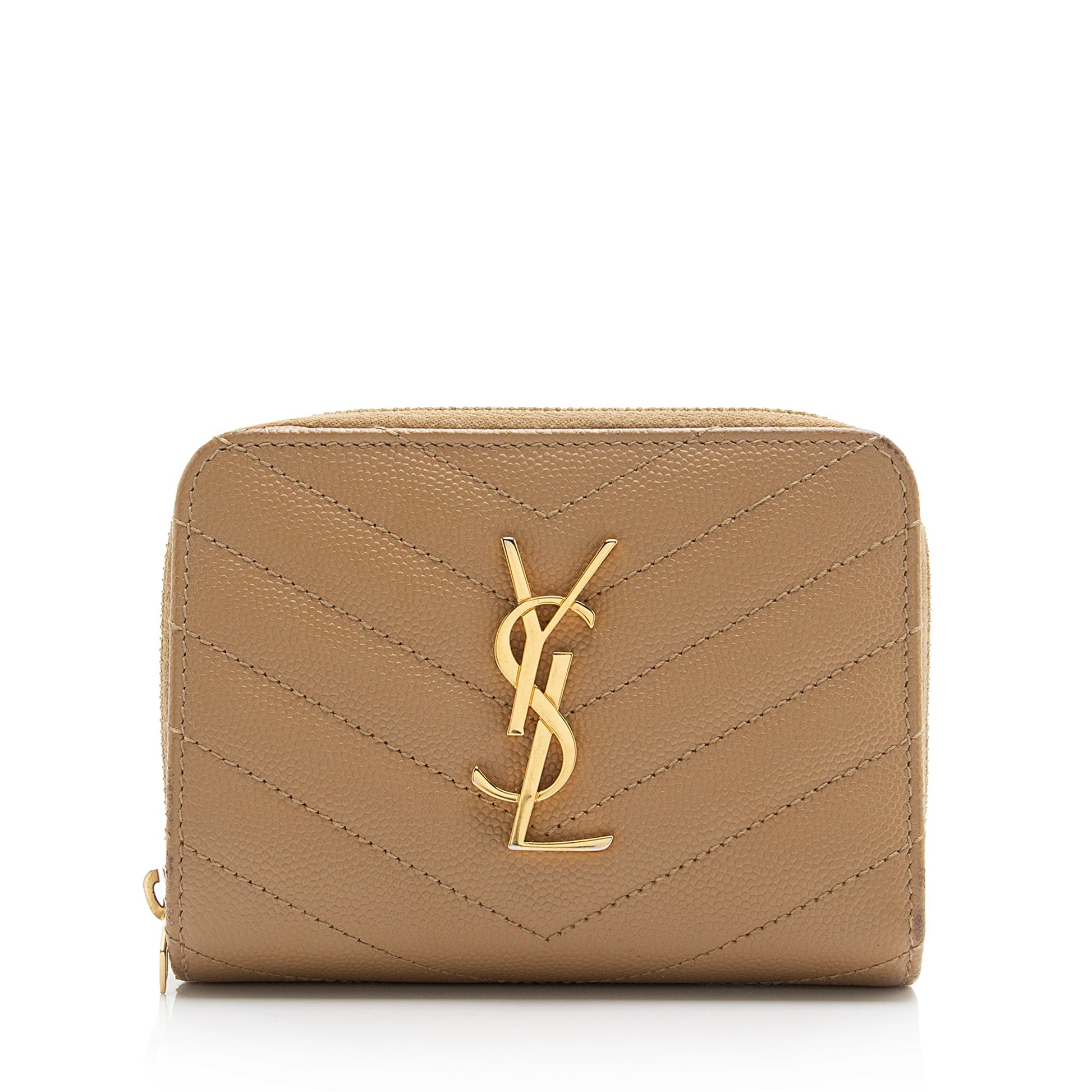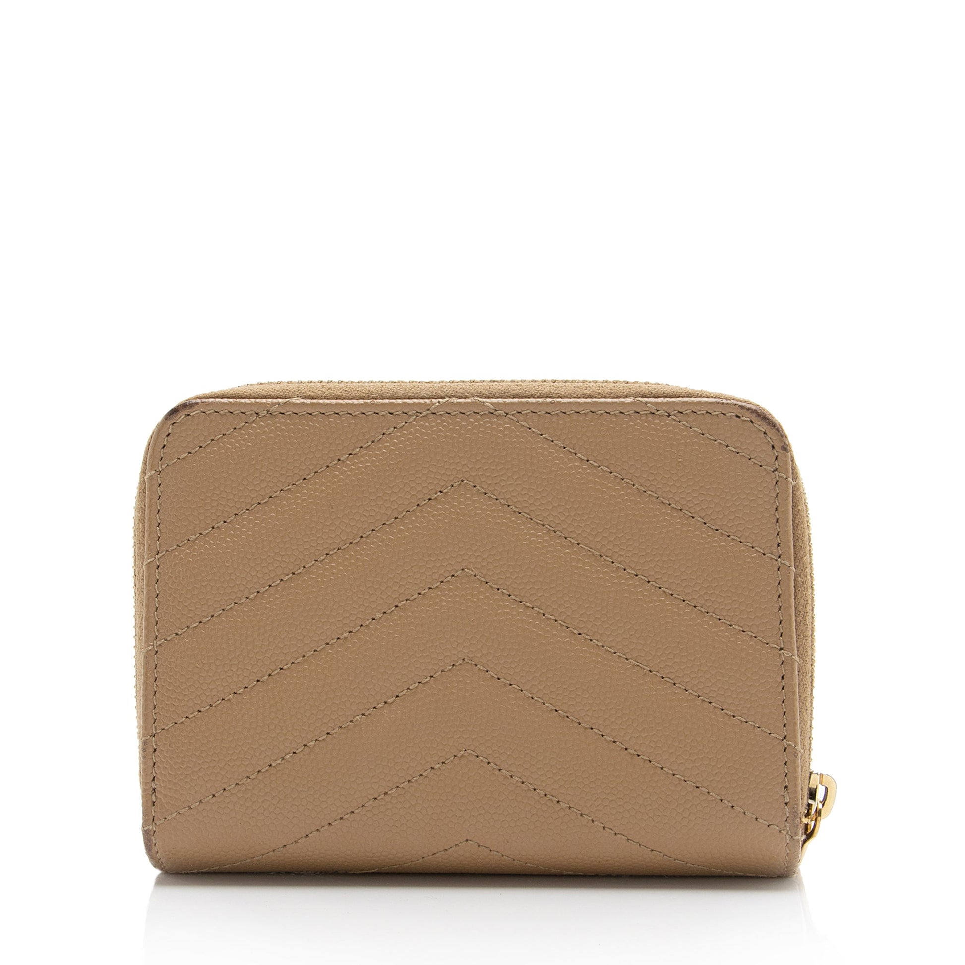 Saint Laurent Matelasse Grain de Poudre Monogram Compact Zip Around Wallet (SHF-23548)