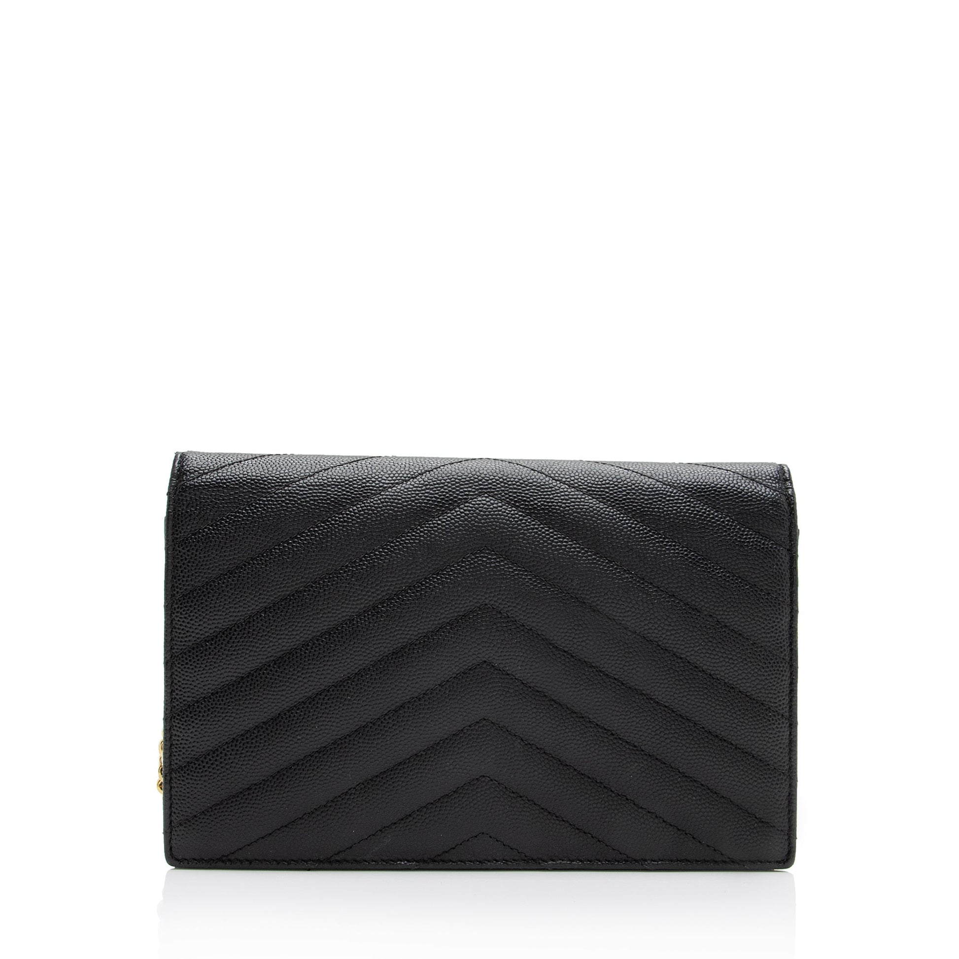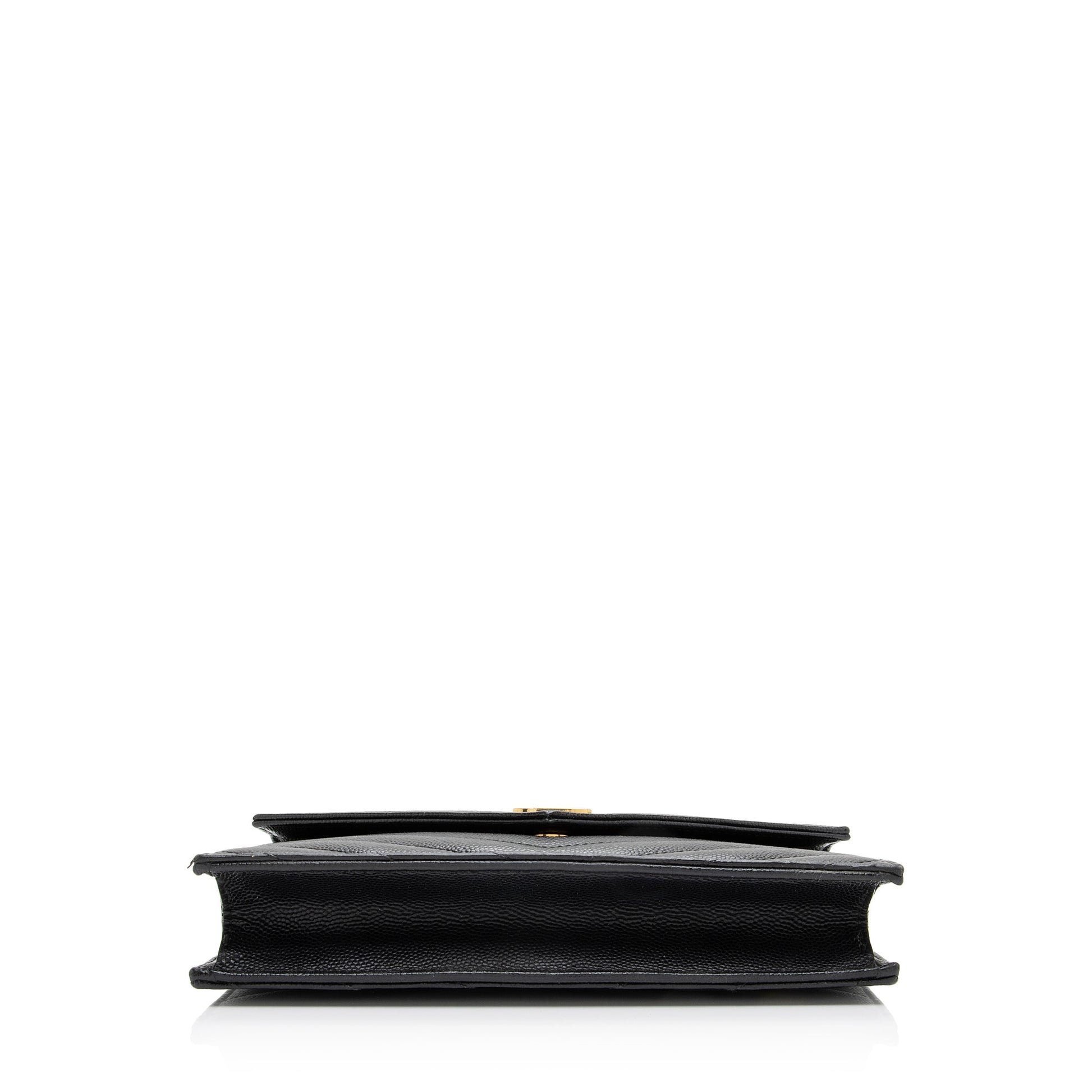 Saint Laurent Matelasse Grain de Poudre Monogram Envelope Chain Wallet (SHF-23410)