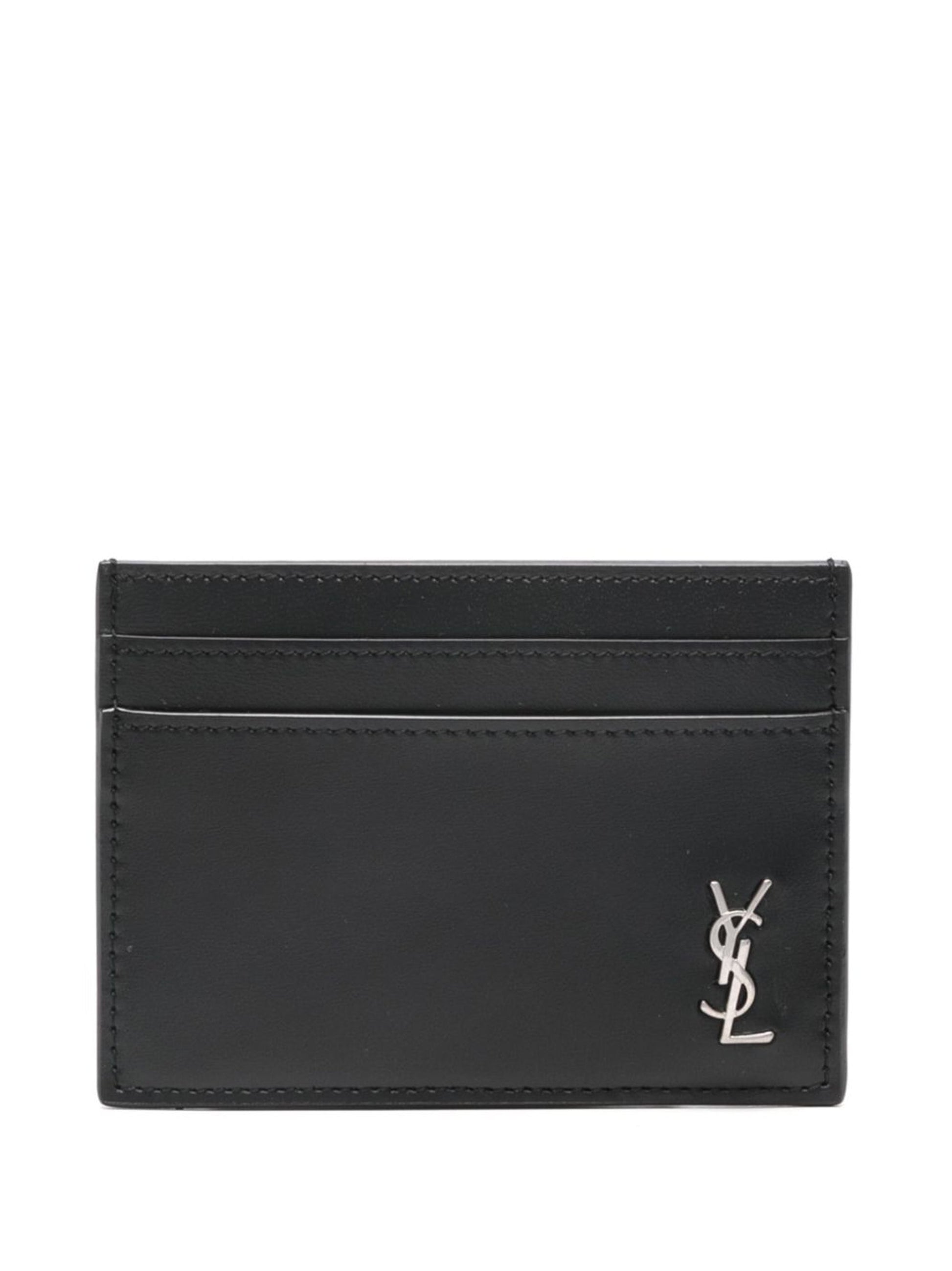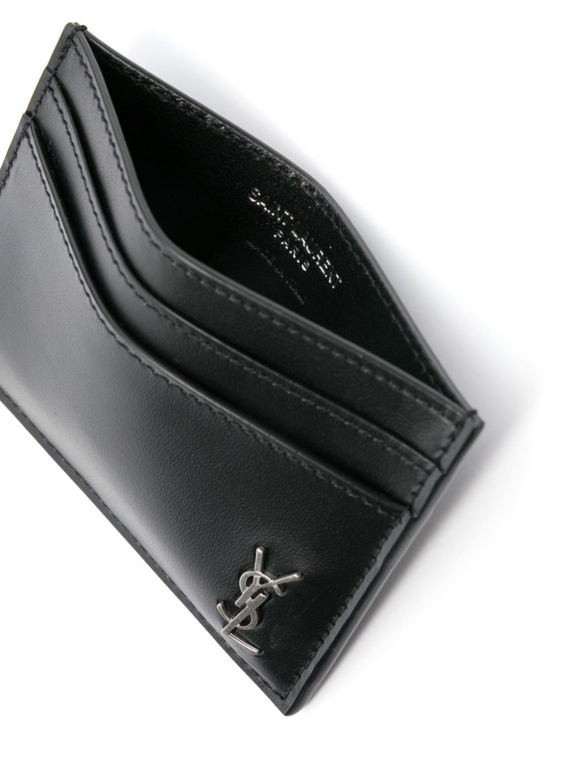 DESCRIPTION ::SAINT LAURENT Tiny Cassandre card holder in black matte leather, featuring silver-tone hardware, small metal YSL initials and five card slots.