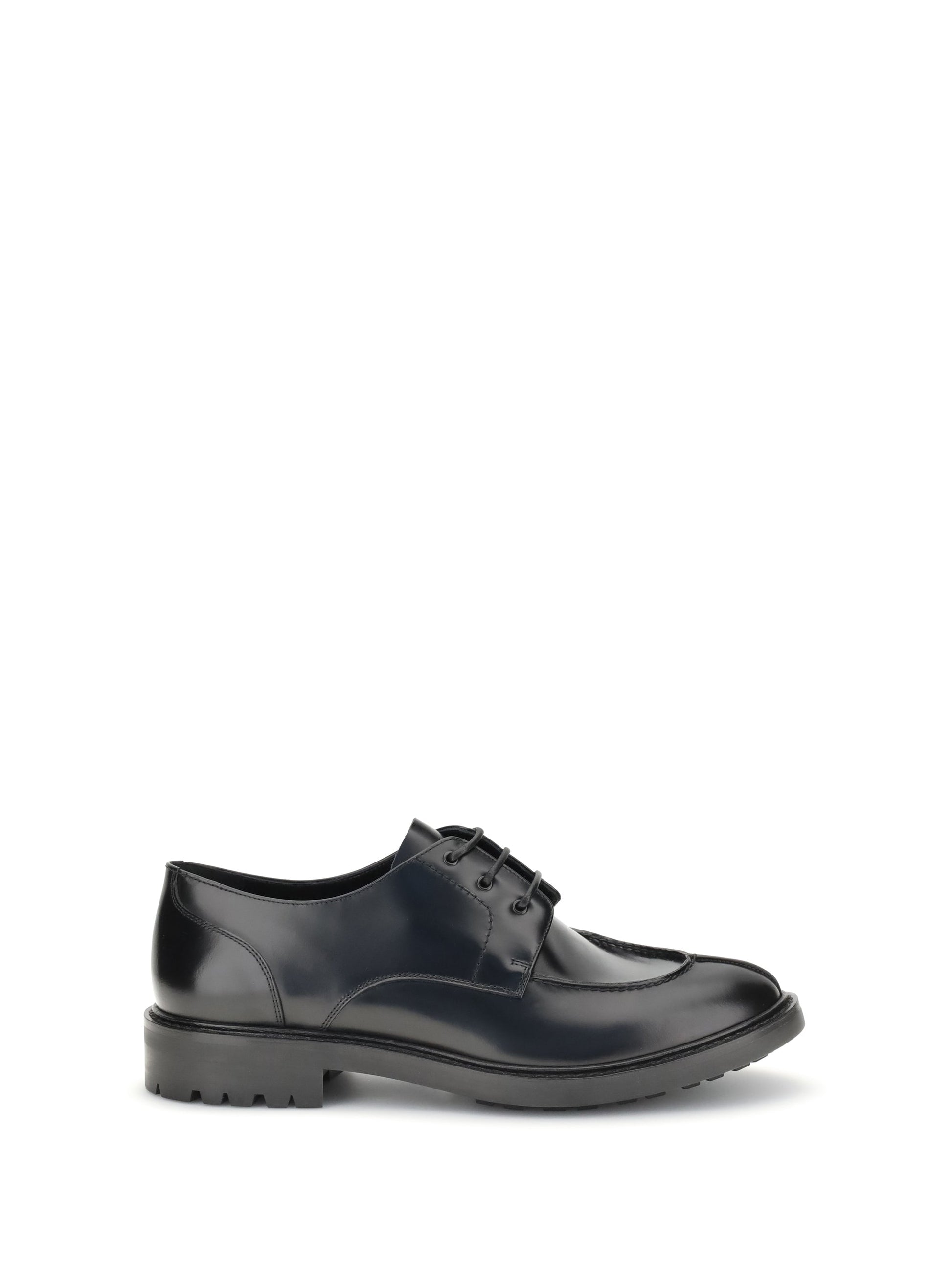 Saint Laurent's leather Lace-Ups reinterpret the classic Derby model with a bold, contemporary twist. Made of smooth leather, they are distinguished by an almond toe and a squared tub construction that lends character to the design. The rubber lug sole, combined with Goodyear construction, ensures strength, durability and a stable fit, ideal for high-impact urban elegance.