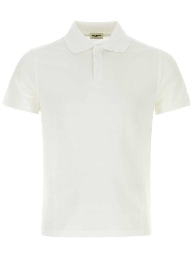 Saint Laurent Men's Monogram Cotton Short Sleeve Polo Shirt White