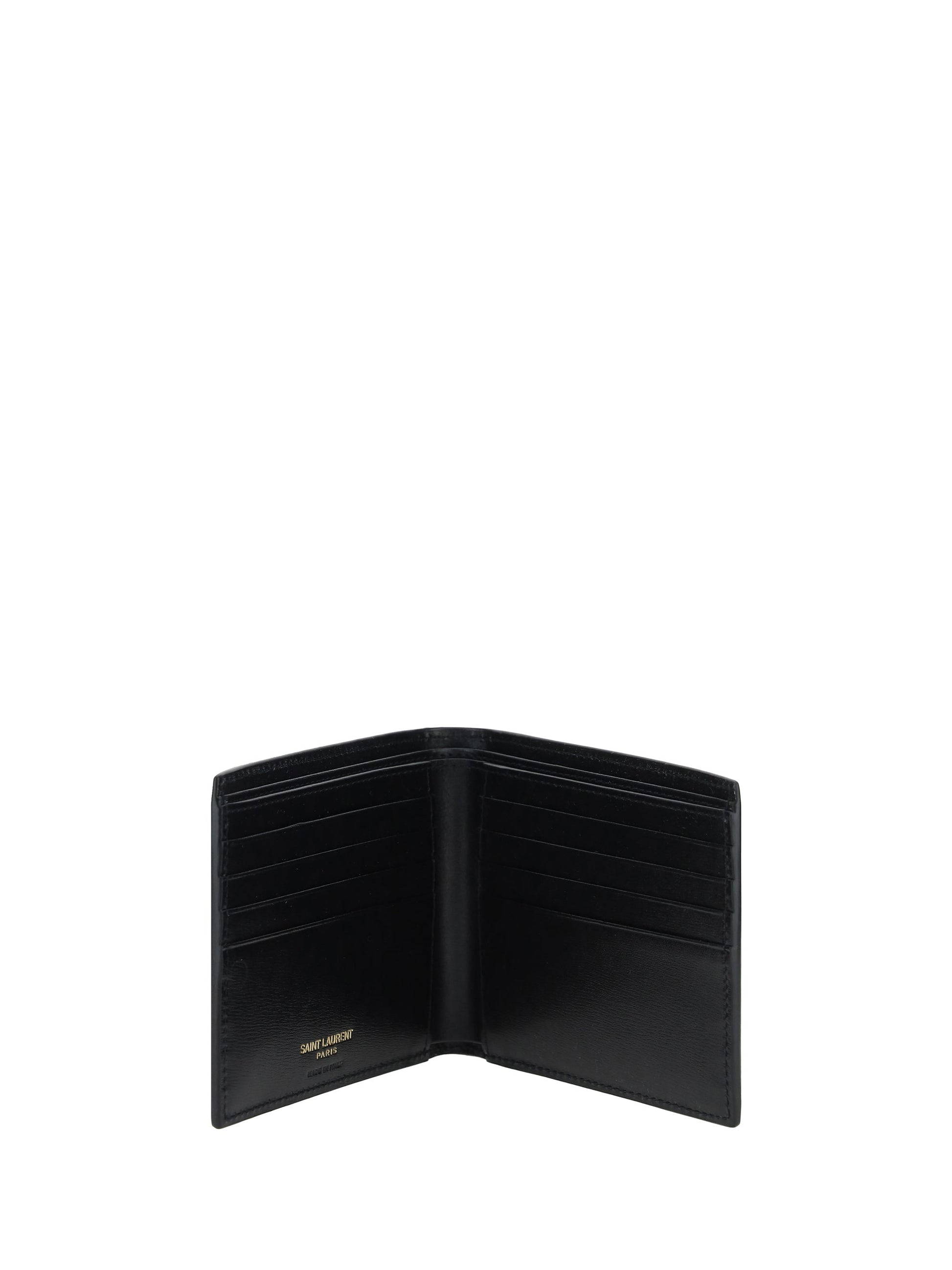 The Saint Laurent Leather Wallet is a stylish and compact accessory perfect for everyday use. Made of high-quality leather, it features an essential billfold design embellished with the iconic YSL logo embossed on the front. The interior is practically organized with a double card slot, combining functionality with unmistakable style.