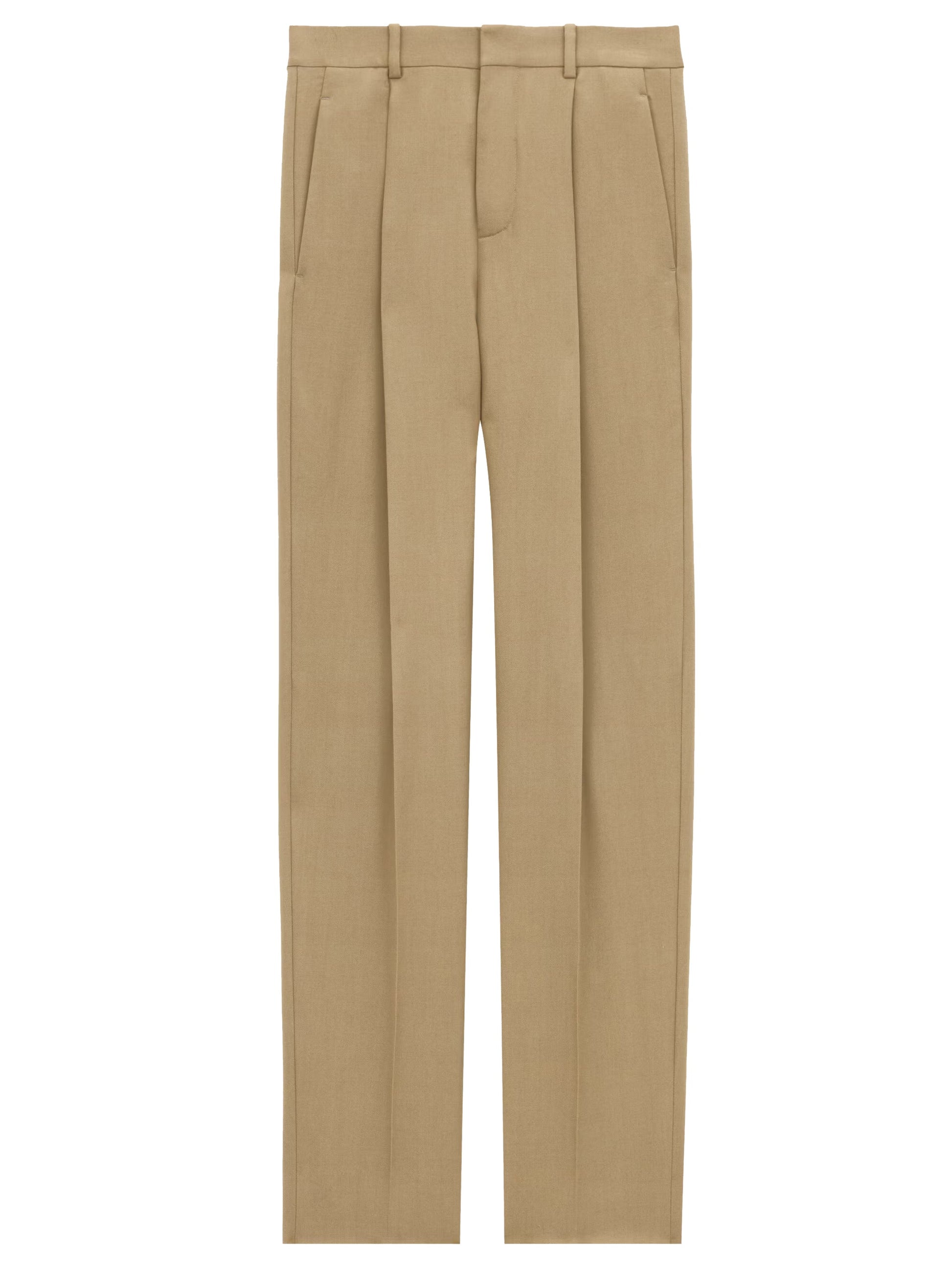 DESCRIPTION ::Beige trousers by SAINT LAURENT featuring a high waist, slanted pockets, belt loops and a carrot-fit cut with a single pleat.