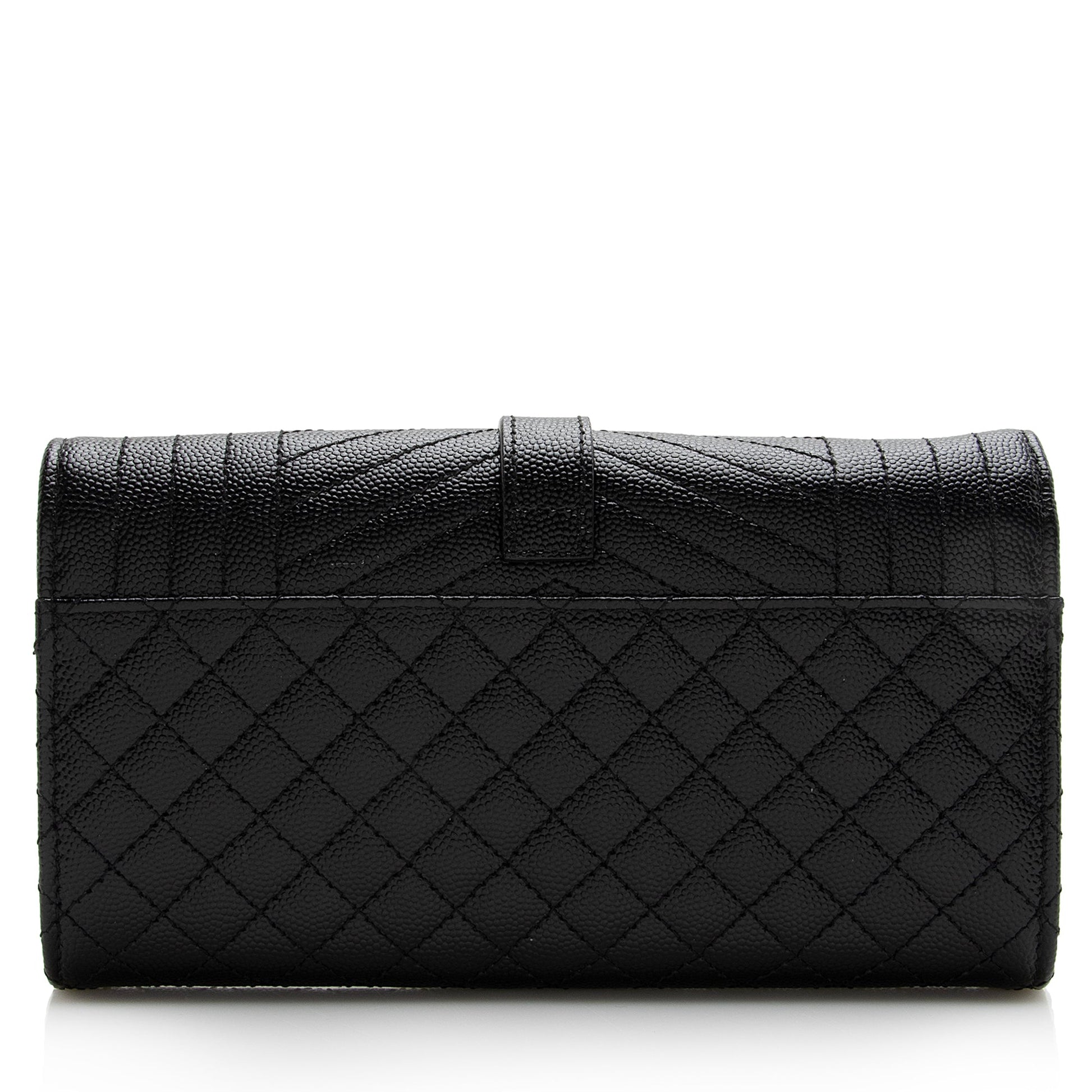 Saint Laurent Mixed Matelasse Grain de Poudre Monogram Large Envelope Wallet (SHF-22691)