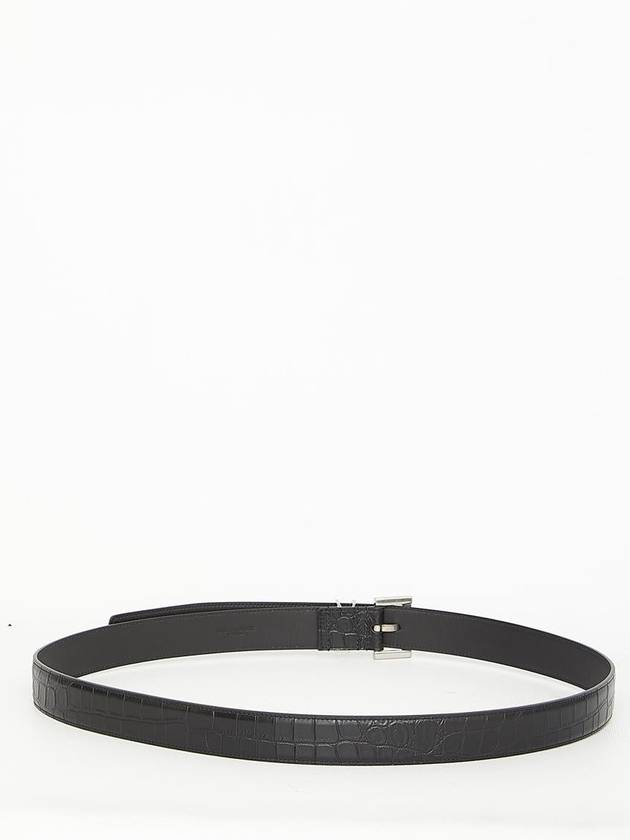 Saint Laurent Monogram Crocodile Leather Belt Black