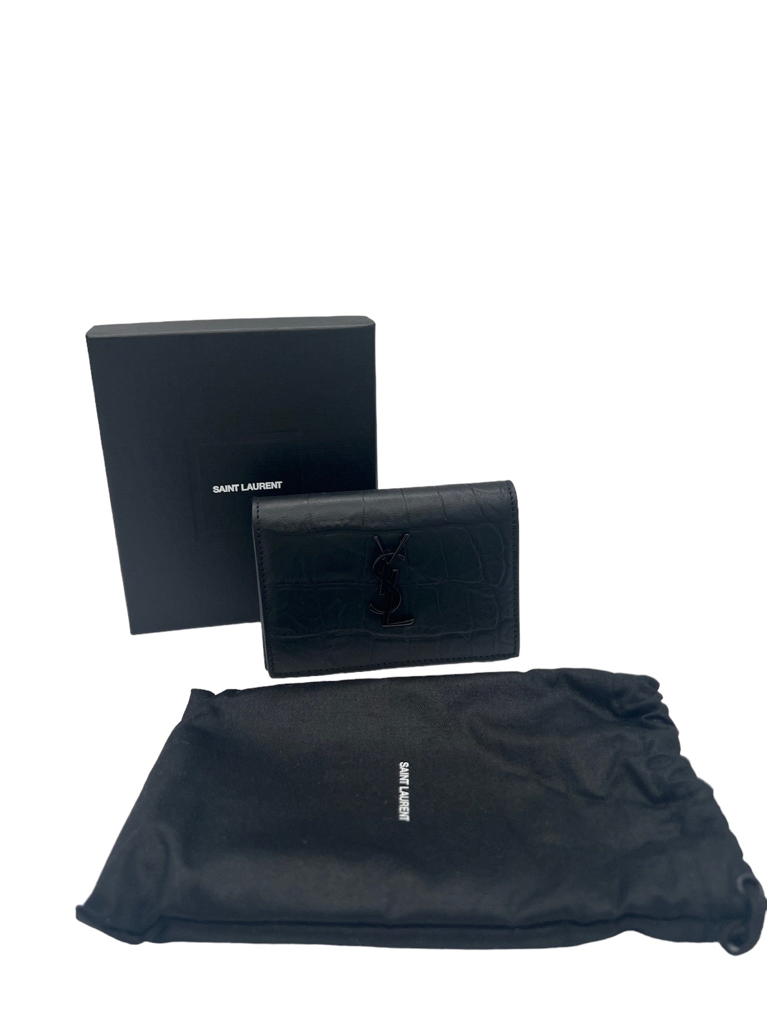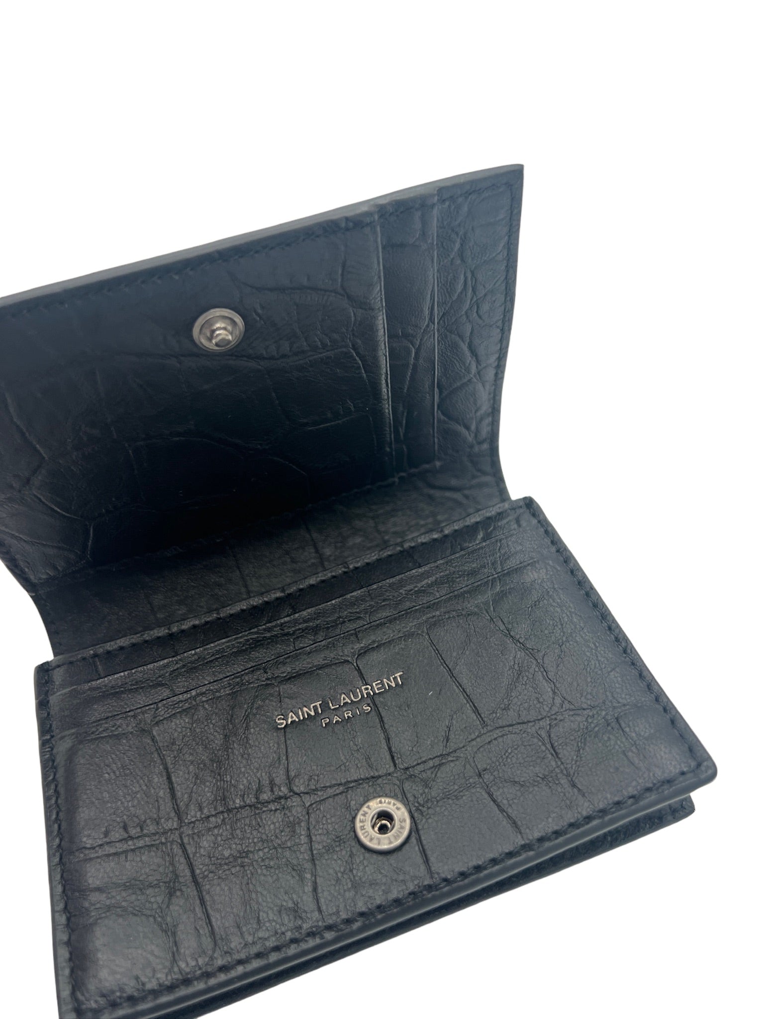 SAINT LAURENT - PARIS Black Leather Business Card Holder