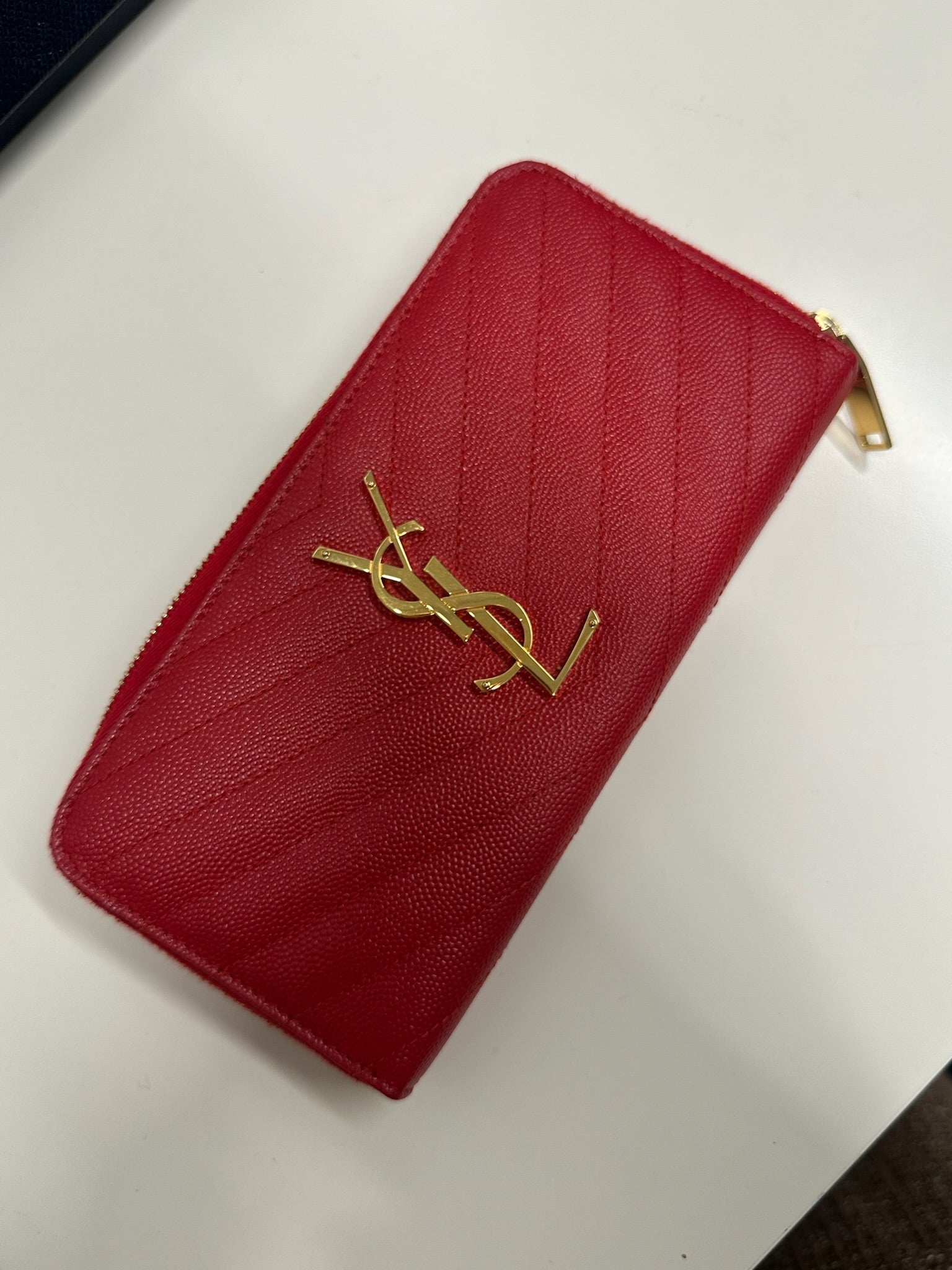 SAINT LAURENT - Red Grain De Poudre Matelasse Monogram Zip Around Wallet