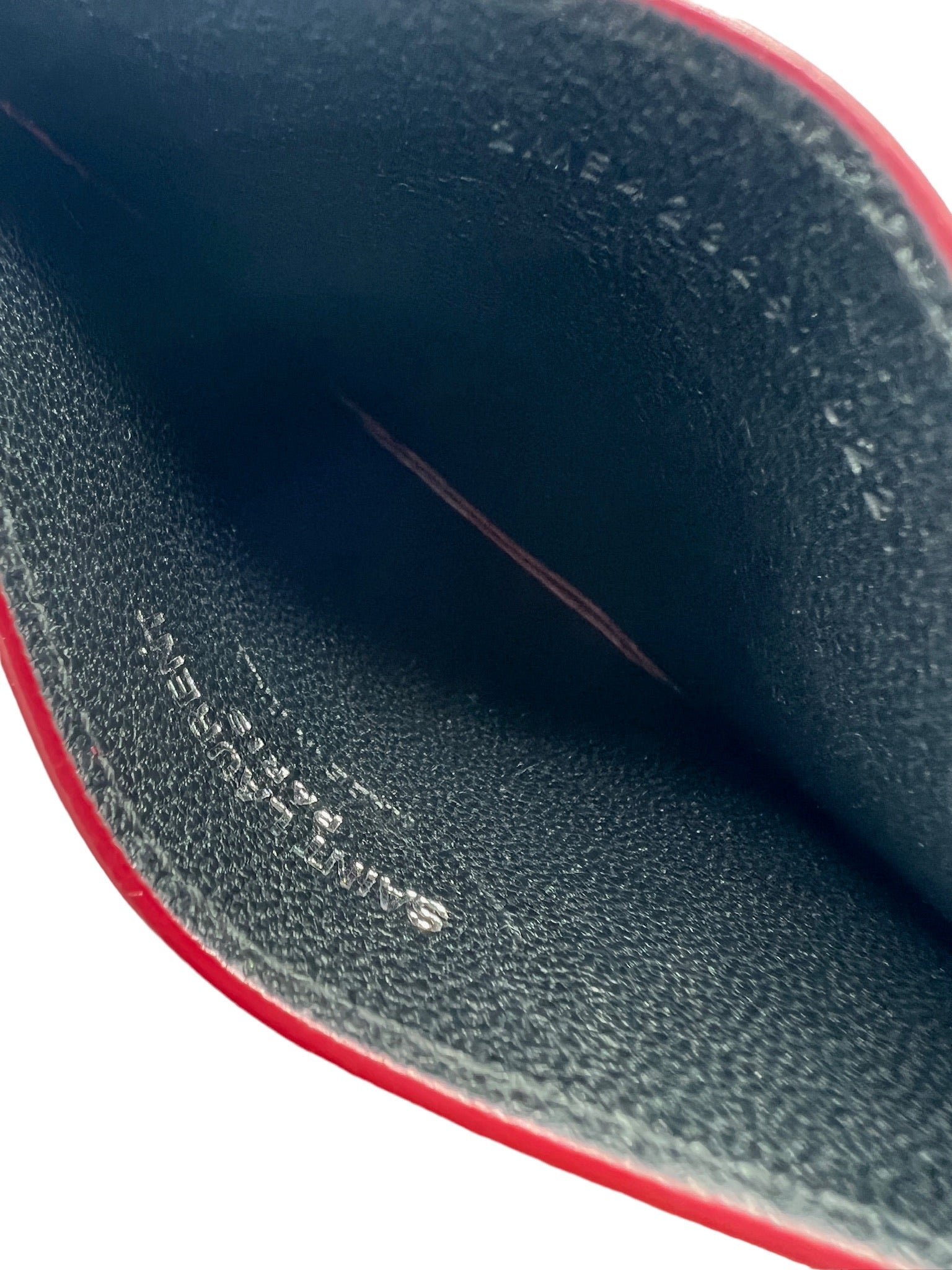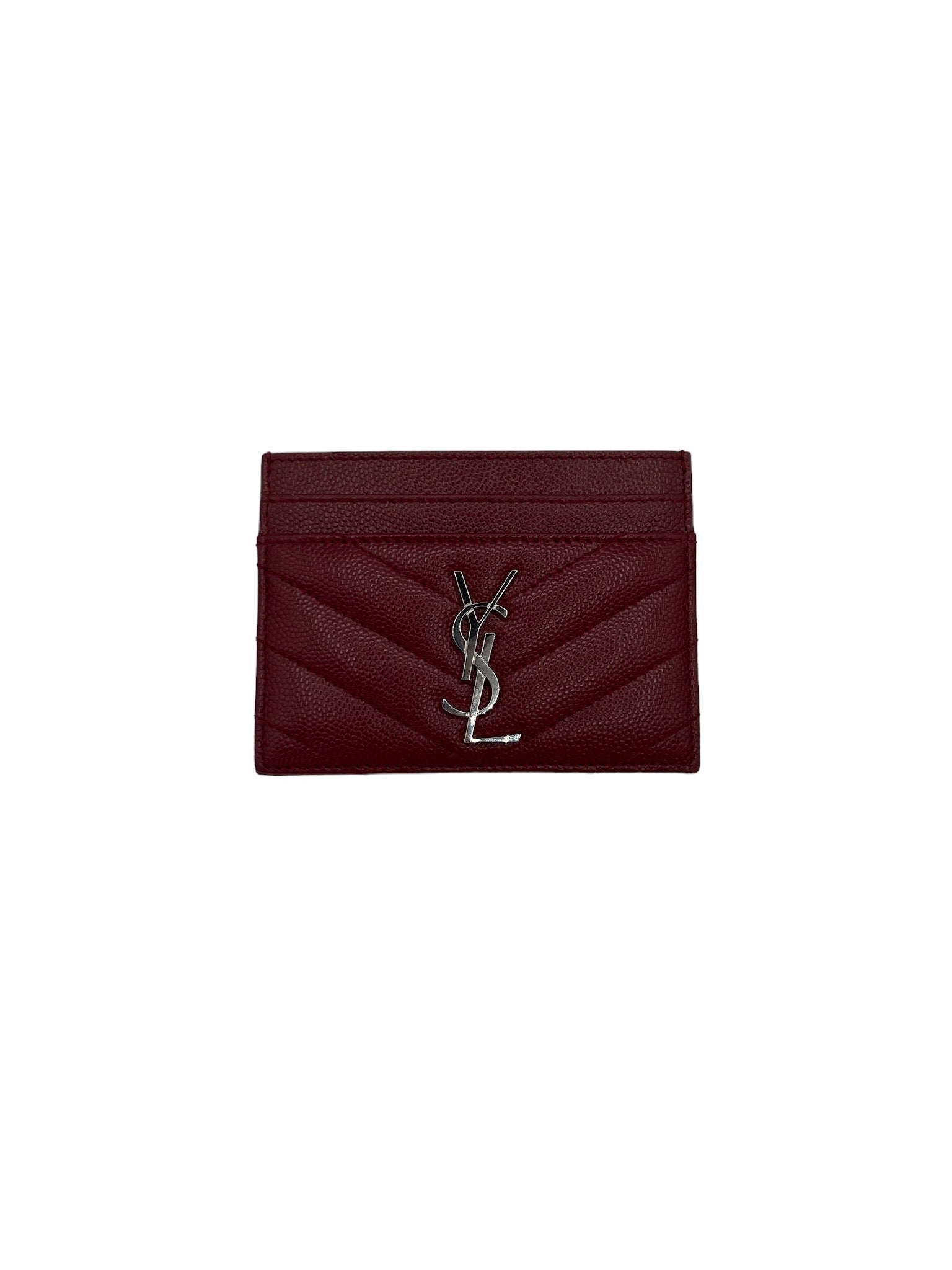 This SAINT LAURENT Rouge Opyum Grain De Poudre Cassandre Card Case is a small yet stylish accessory for your daily essentials.