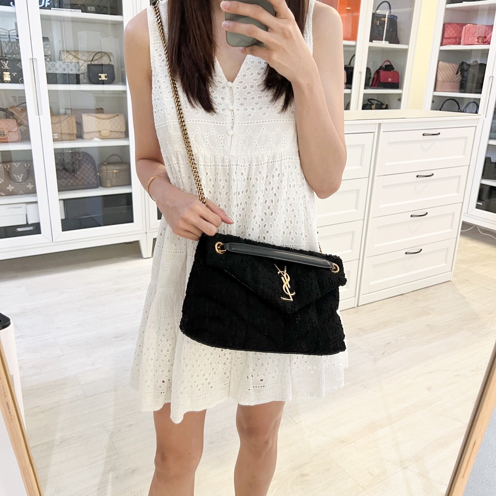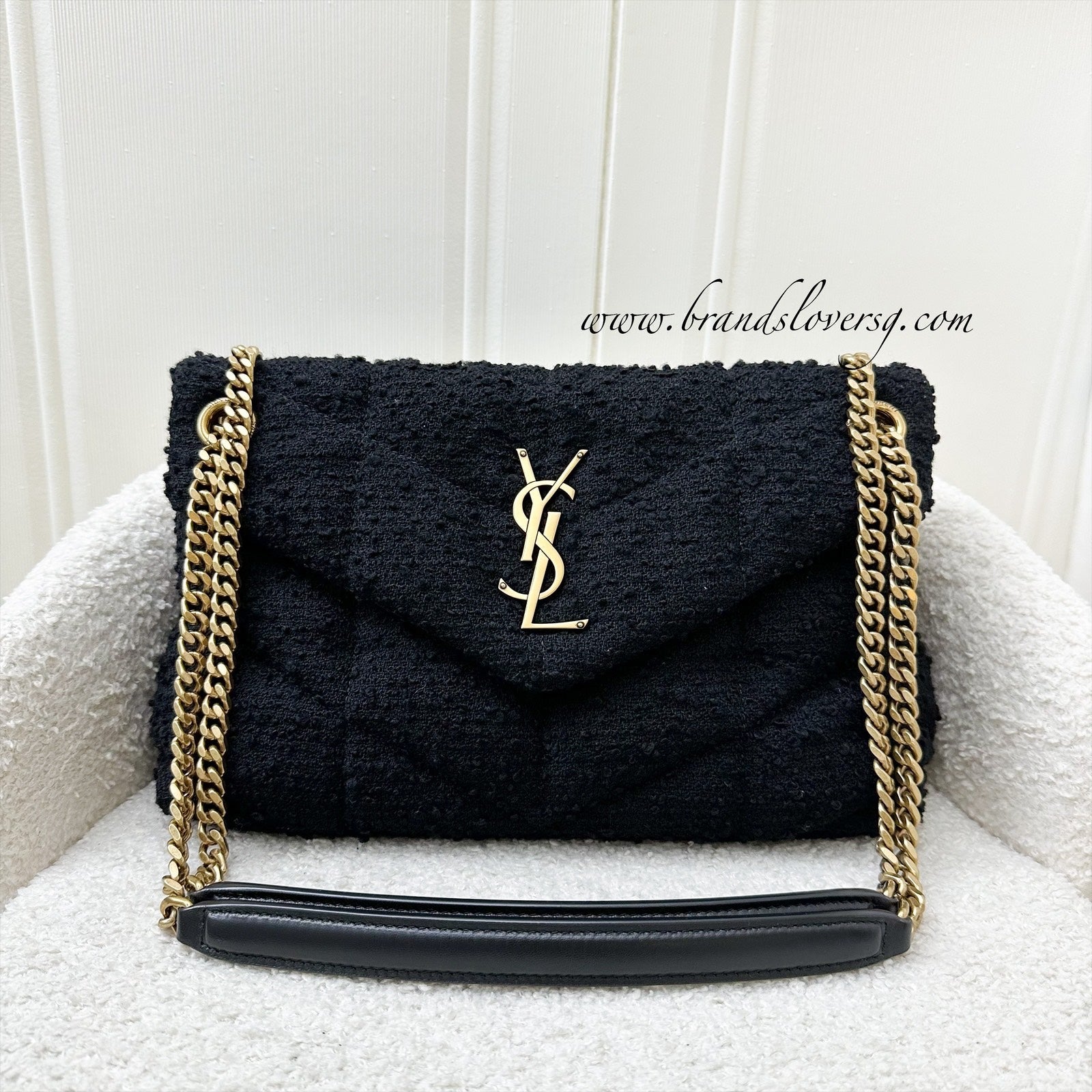Saint Laurent YSL Small Loulou Puffer Bag in Black Wool / Tweed and GHW