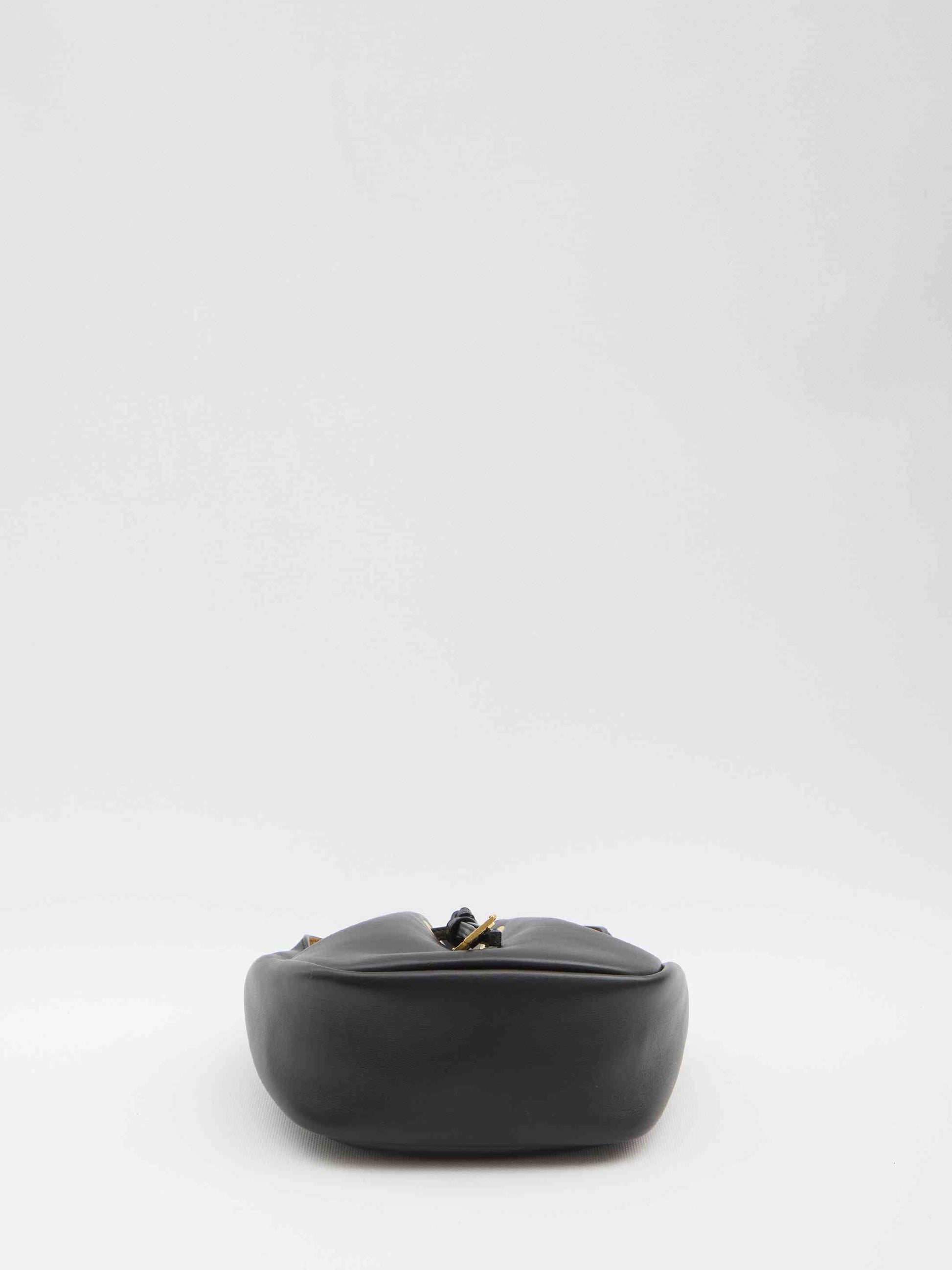 Bag in black calfskin leather. Features sliding chain with leather detail, drawstring closure with Cassandre detail, suede interior, single compartment. Dustbag included. Any leather imperfections are not to be considered manufacturing defects but a characteristic of the material.