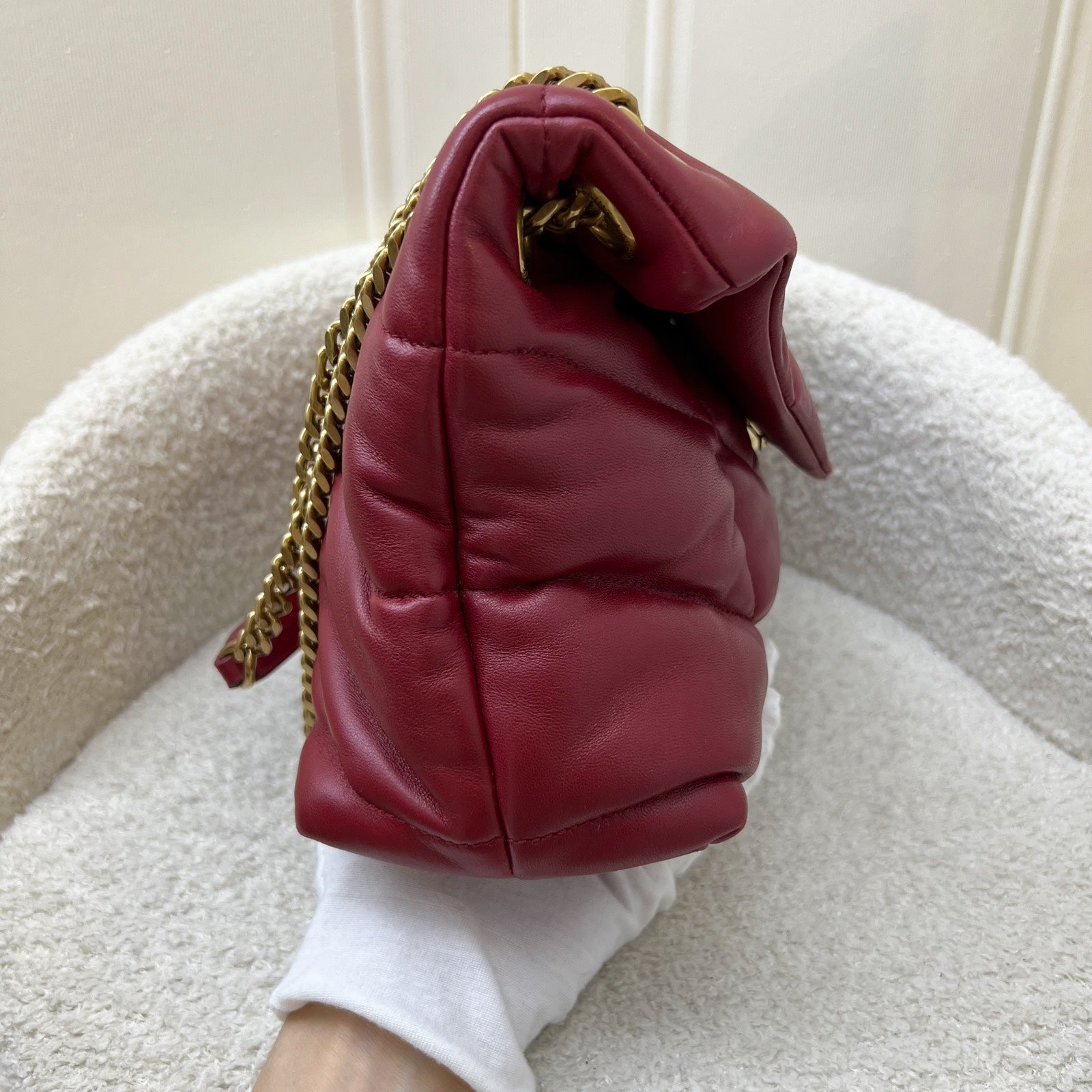 Saint Laurent YSL Small Loulou Puffer Bag in Raspberry Red Lambskin and GHW