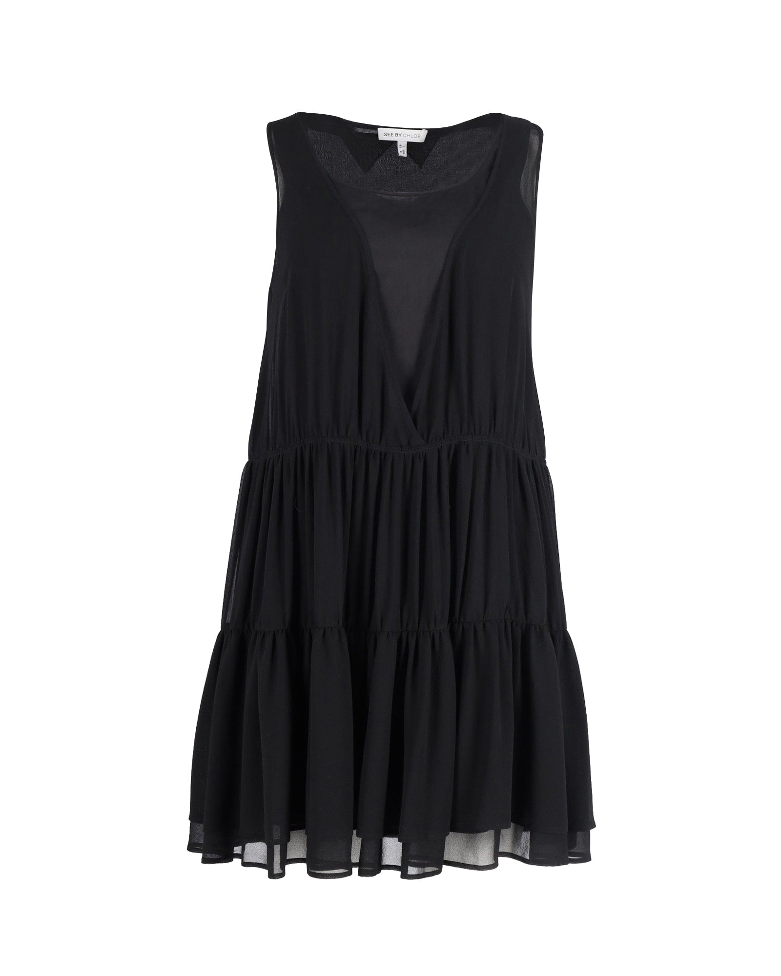 See By Chloe Sleeveless Tiered Mini Dress in Black Silk