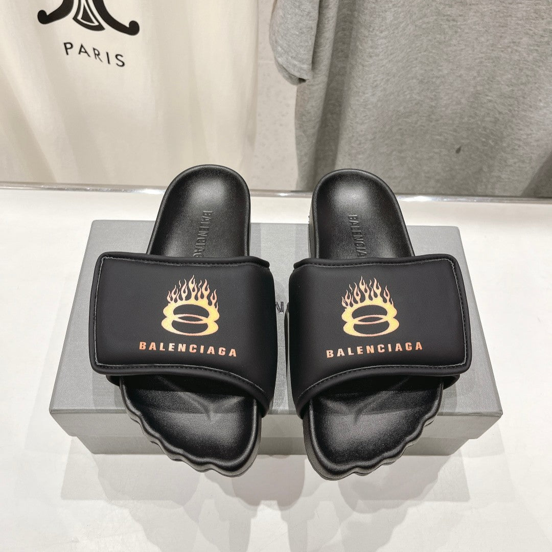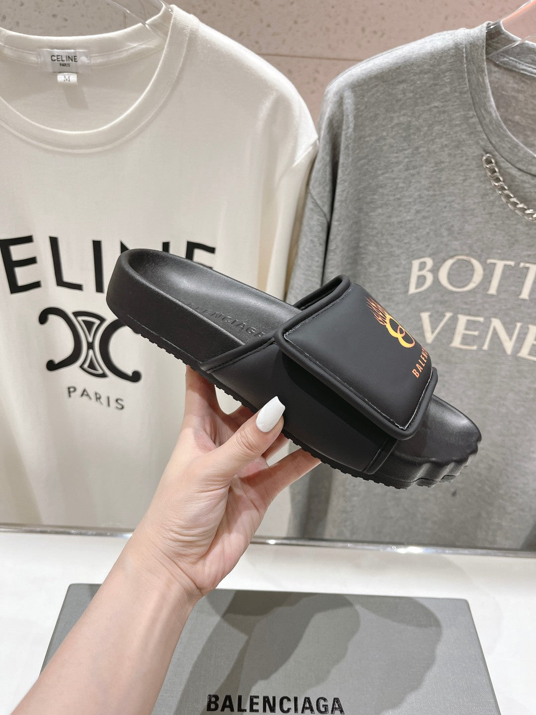 Balanciaga SLIDE SANDALS IN BLACK NYLON AND RUBBER YELLOW PRINT