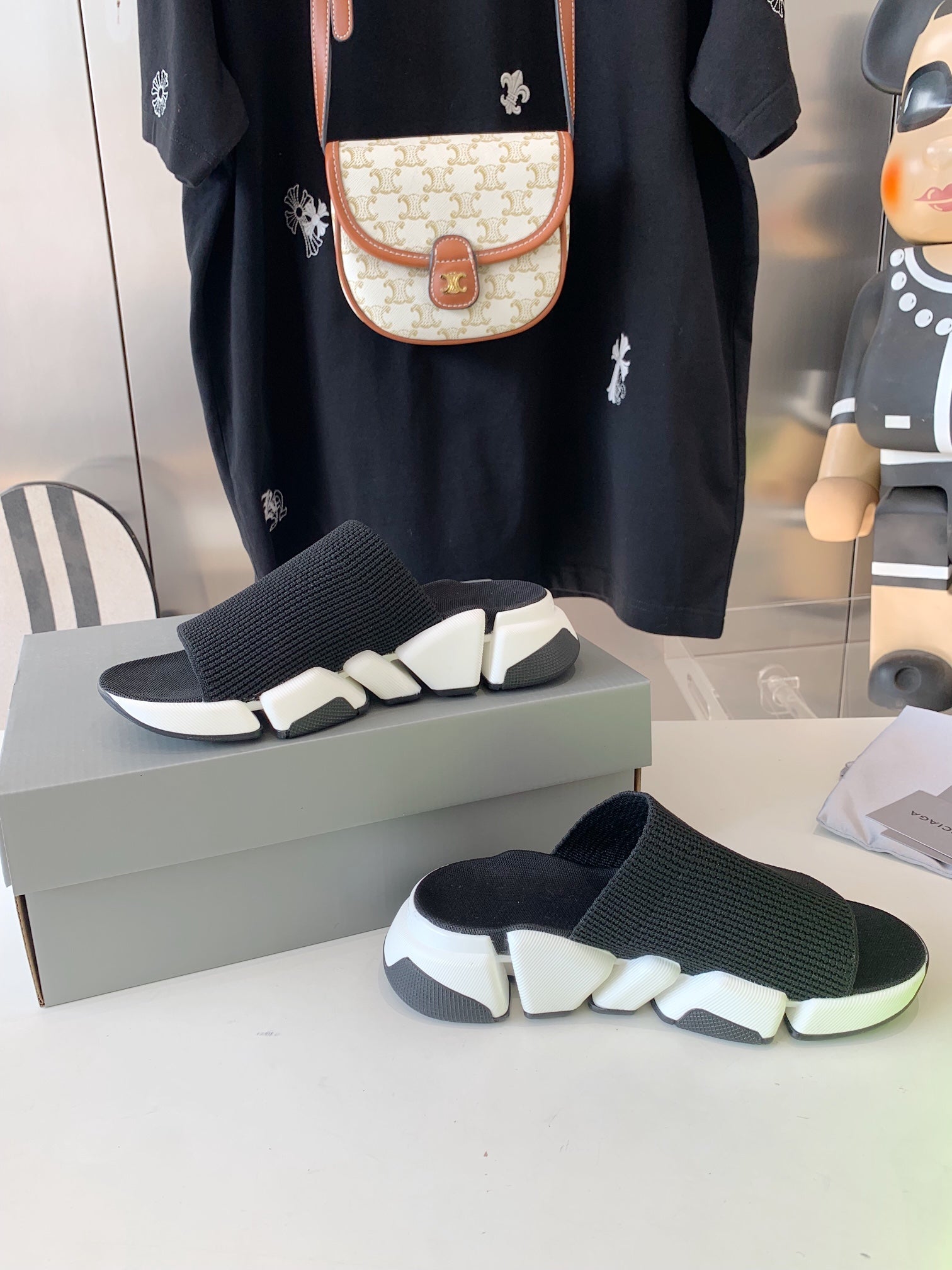 Balanciaga SPEED 2.0 SLIDE SANDAL IN BLACK RECYCLED KNIT AND WHITE SOLE