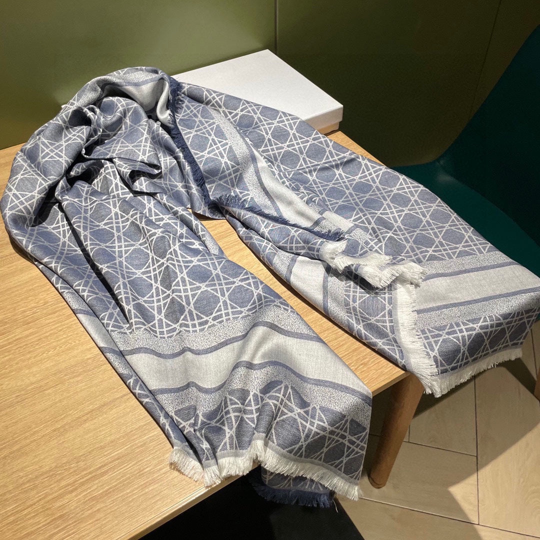 DIOR SQUARE SCARF 140 CM IN AEGEAN BLUE MIX WHITE WOOL AND SILK 415455