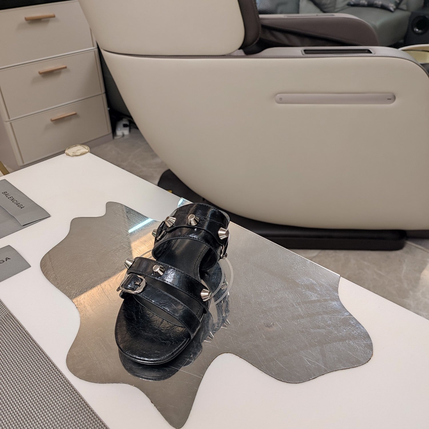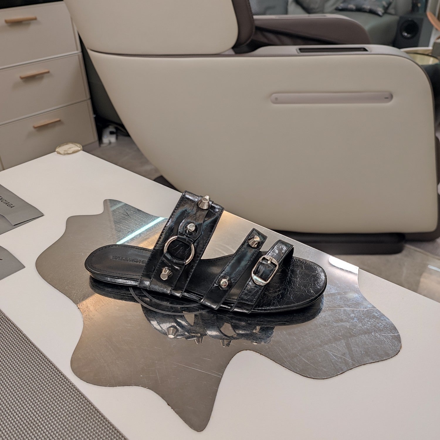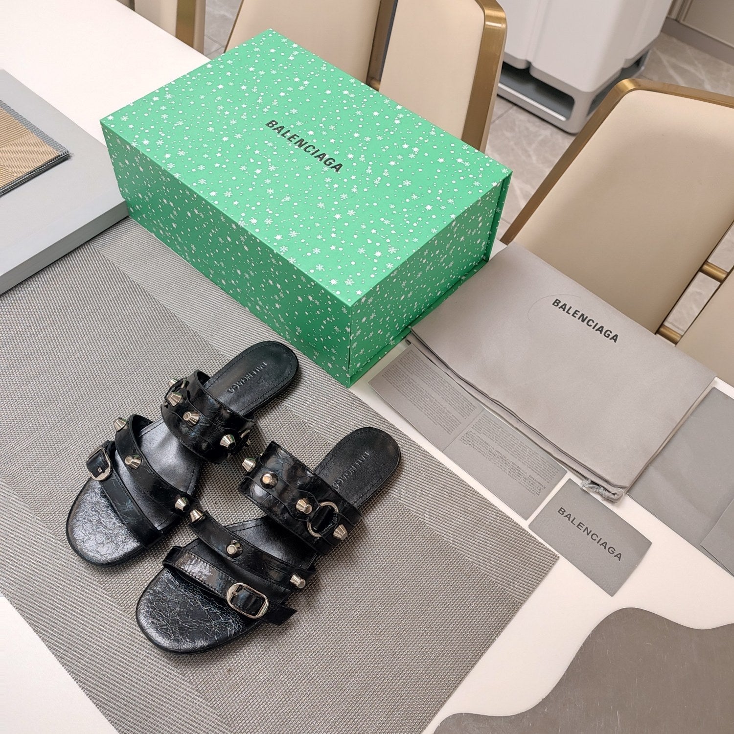 Balanciaga STRAPPY FLAT SANDALS IN BLACK STUDDED WAX-OIL SHEEPSKIN