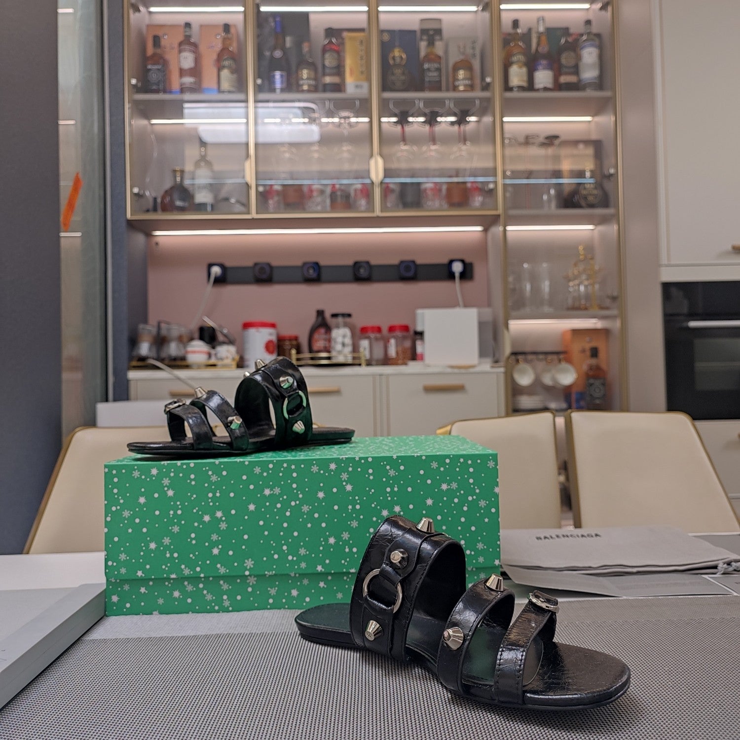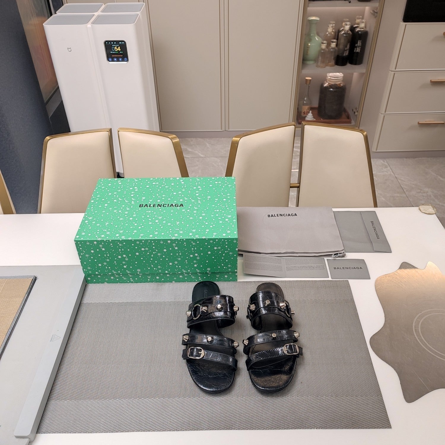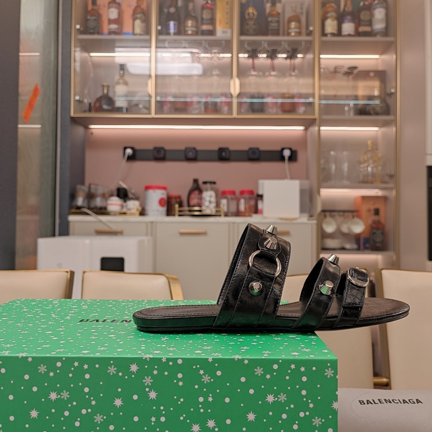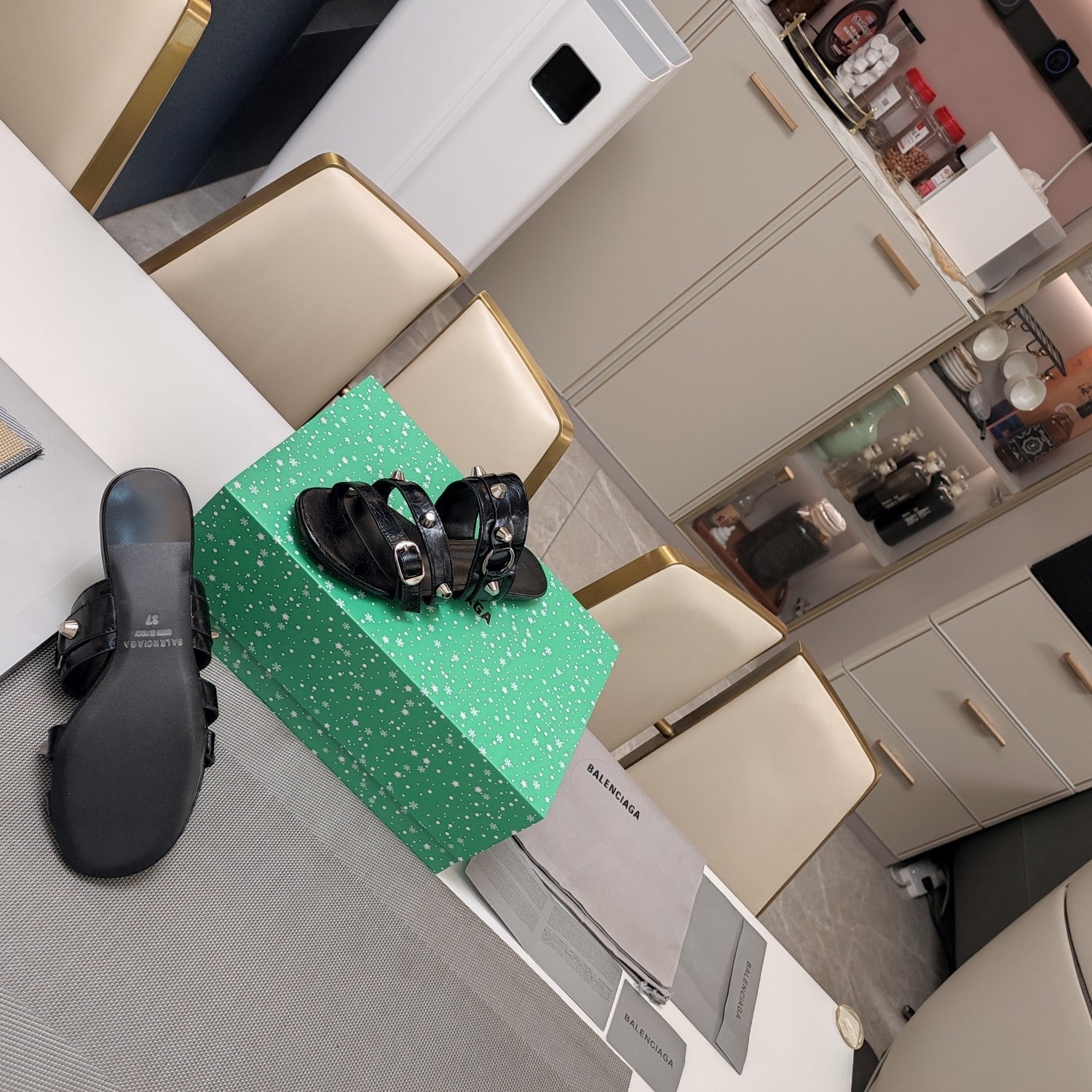 Balanciaga STRAPPY FLAT SANDALS IN BLACK STUDDED WAX-OIL SHEEPSKIN