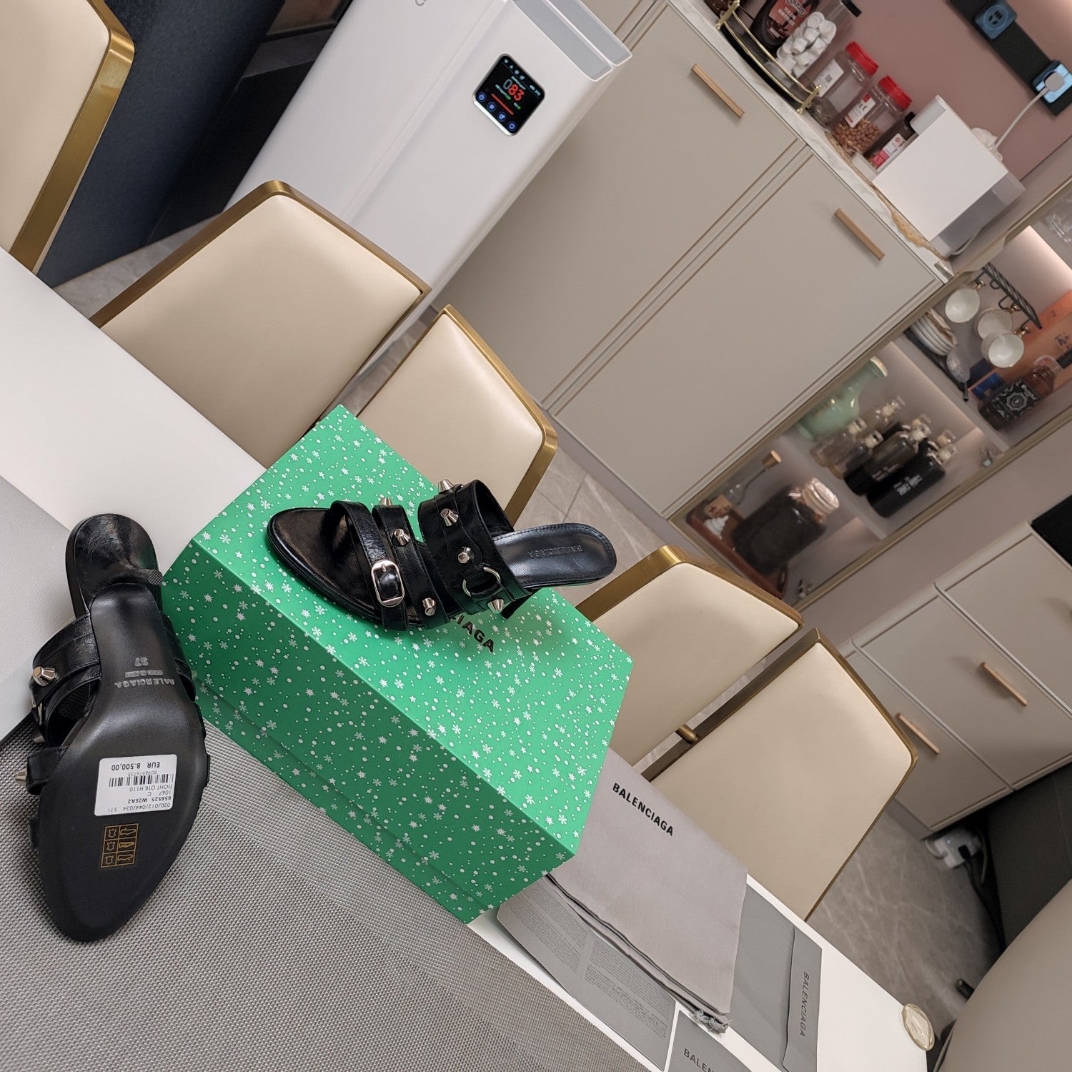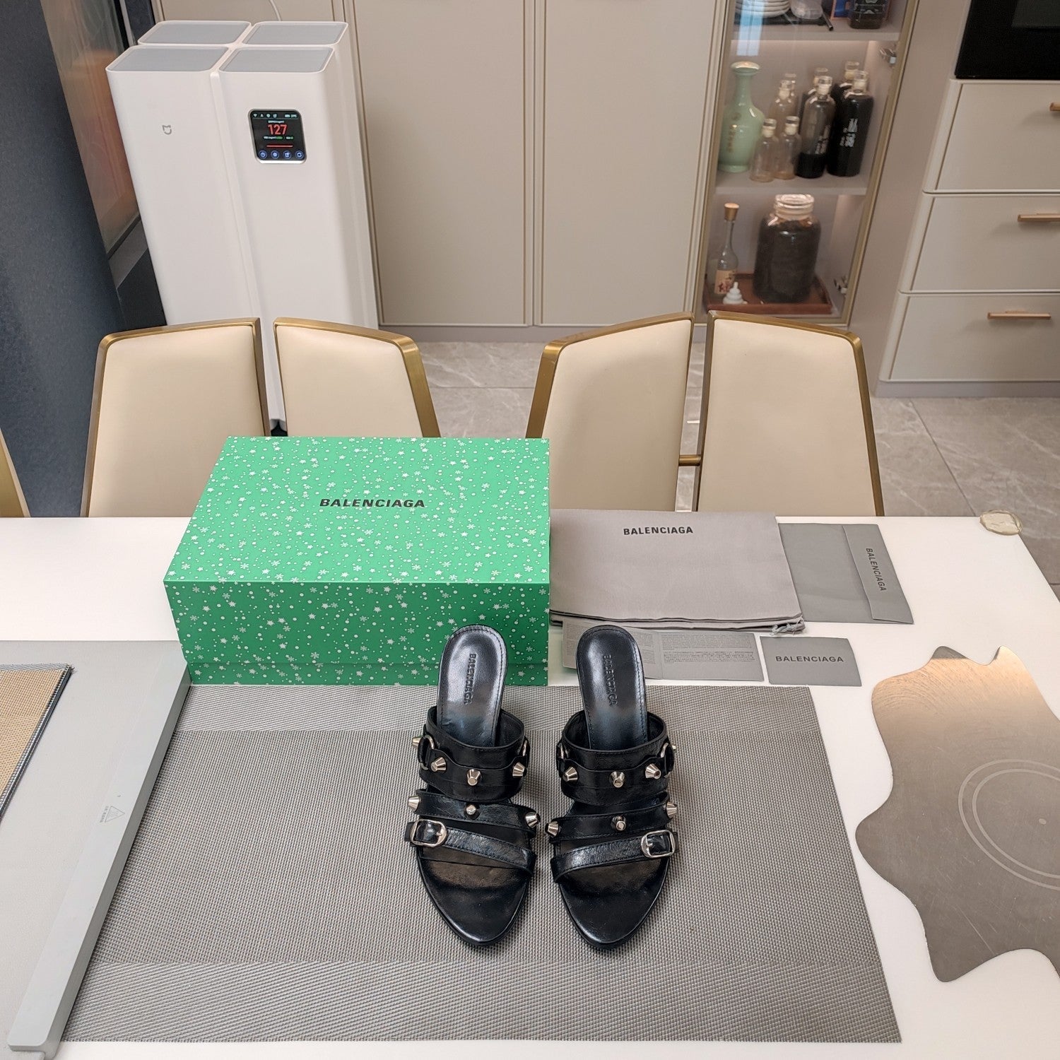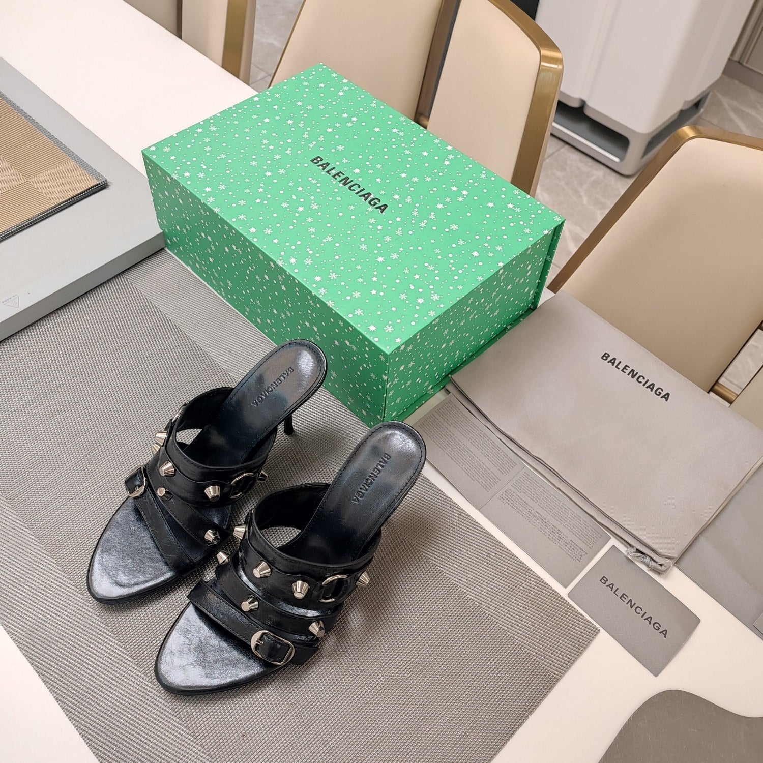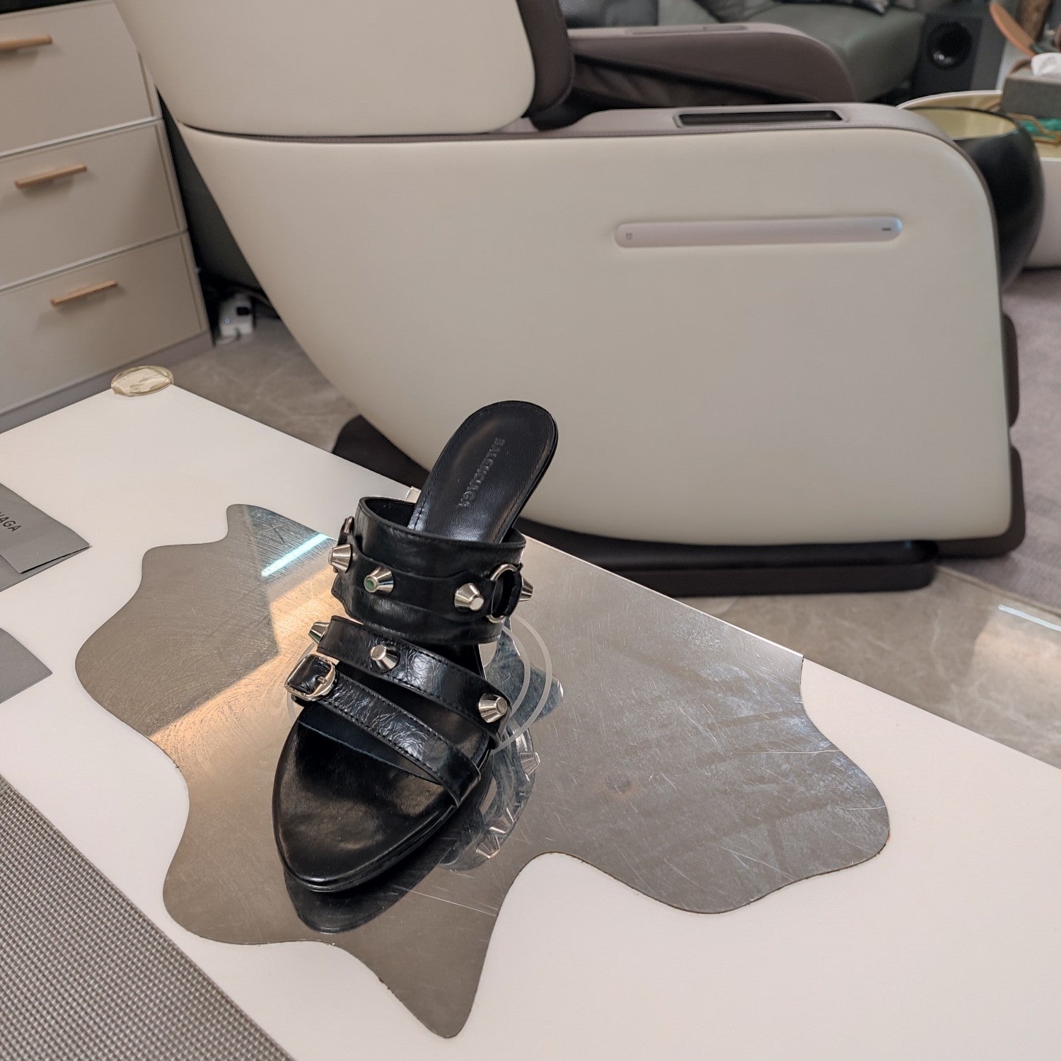 Balanciaga STRAPPY HIGH-HEELED SANDALS IN BLACK STUDDED WAX-OIL SHEEPSKIN