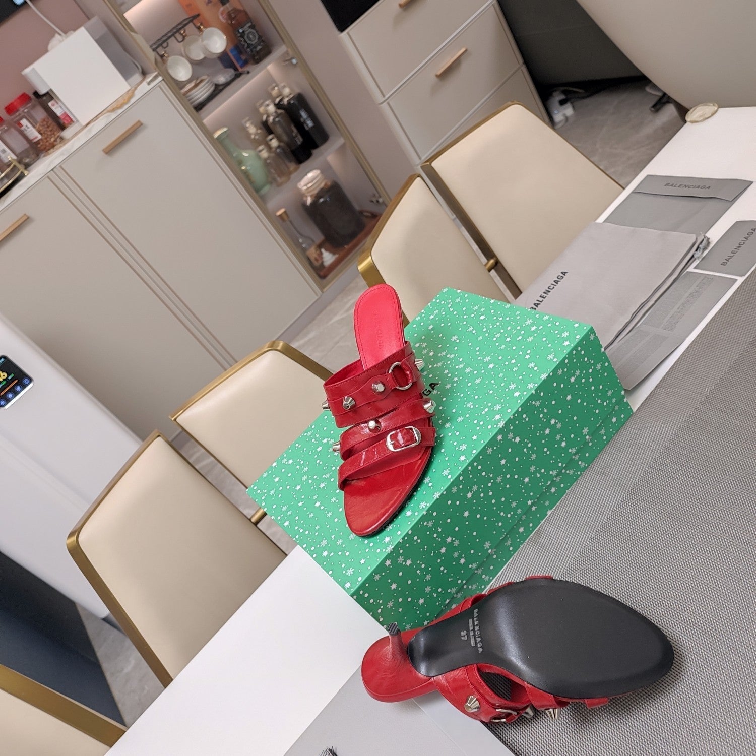 Balanciaga STRAPPY HIGH-HEELED SANDALS IN RED STUDDED WAX-OIL SHEEPSKIN