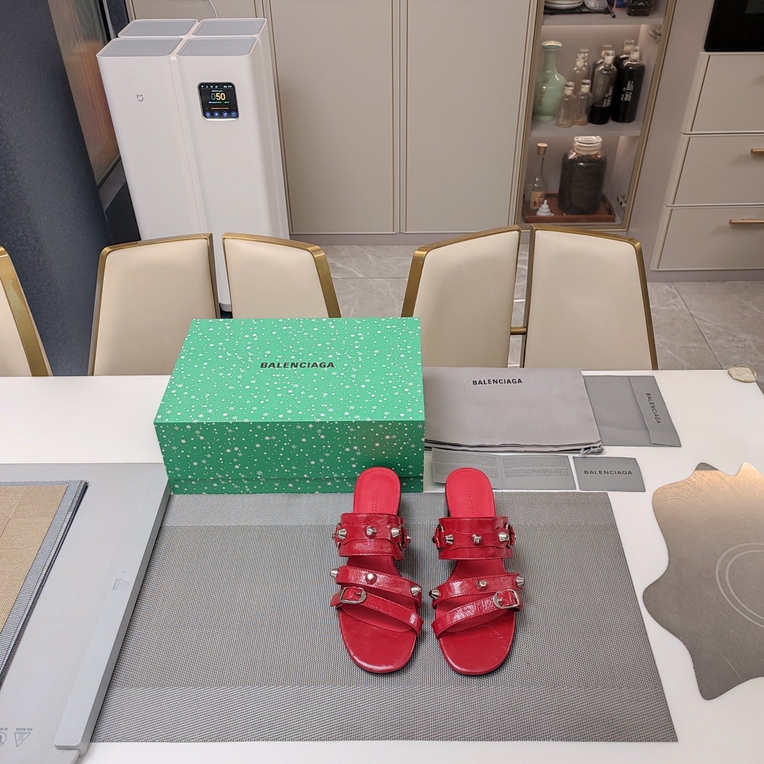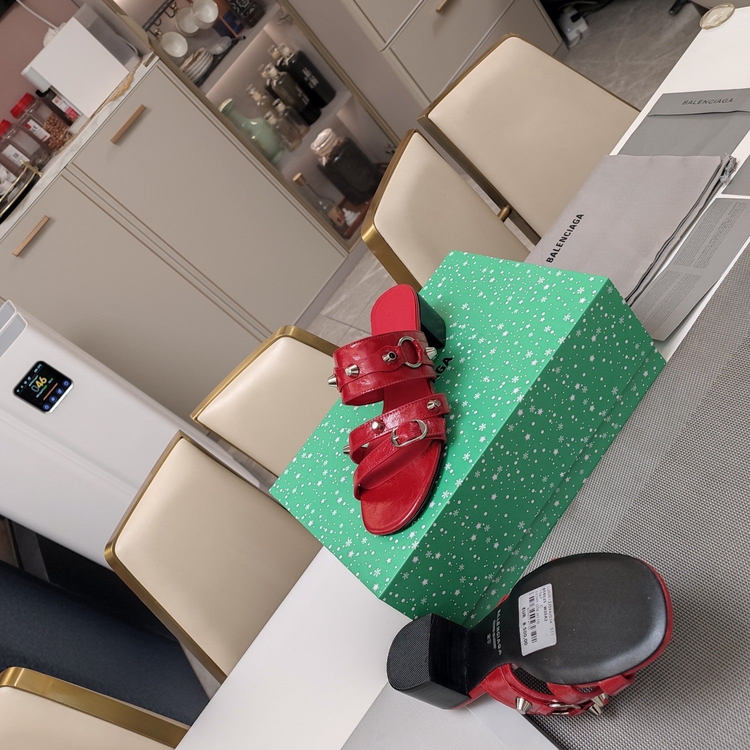Balanciaga STRAPPY MEDIUM HEELED SANDALS IN RED STUDDED WAX-OIL SHEEPSKIN
