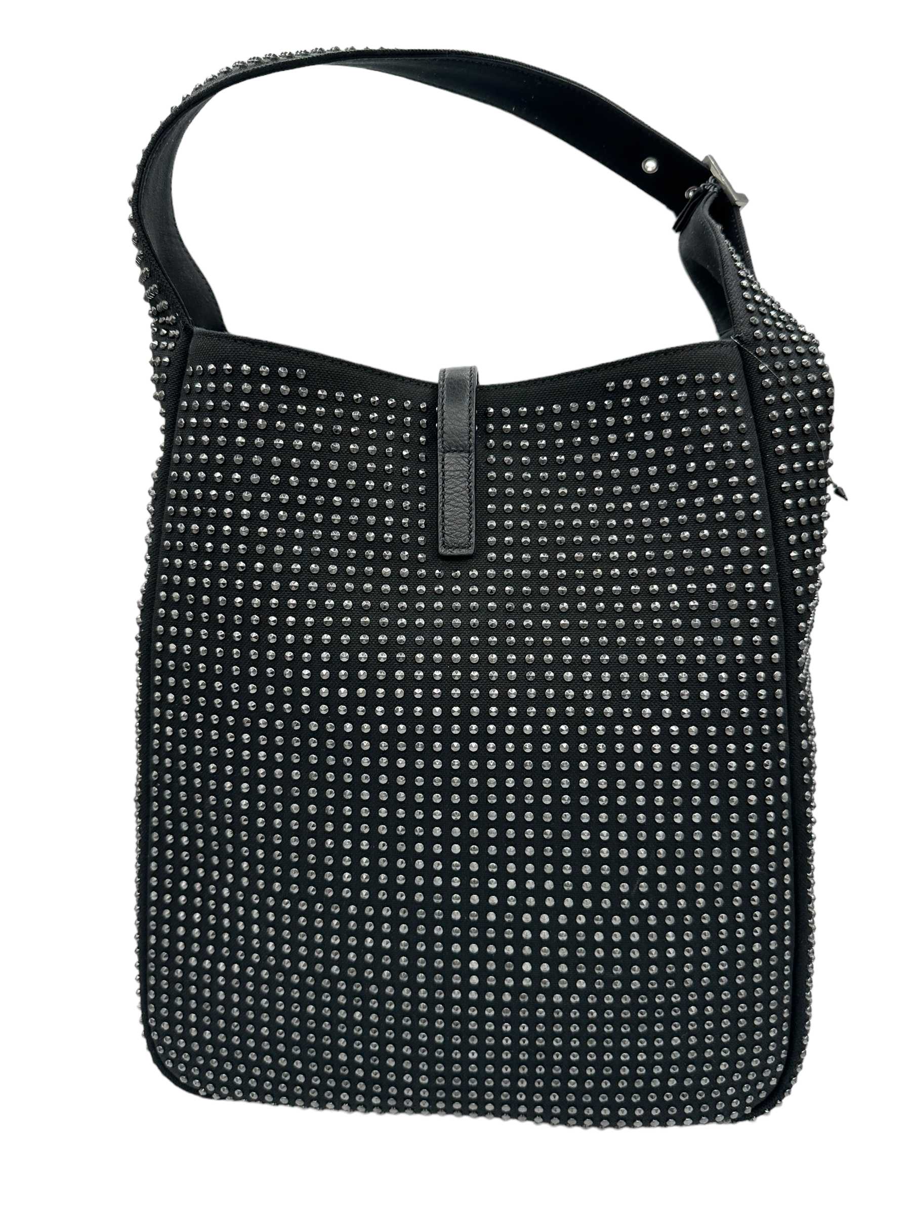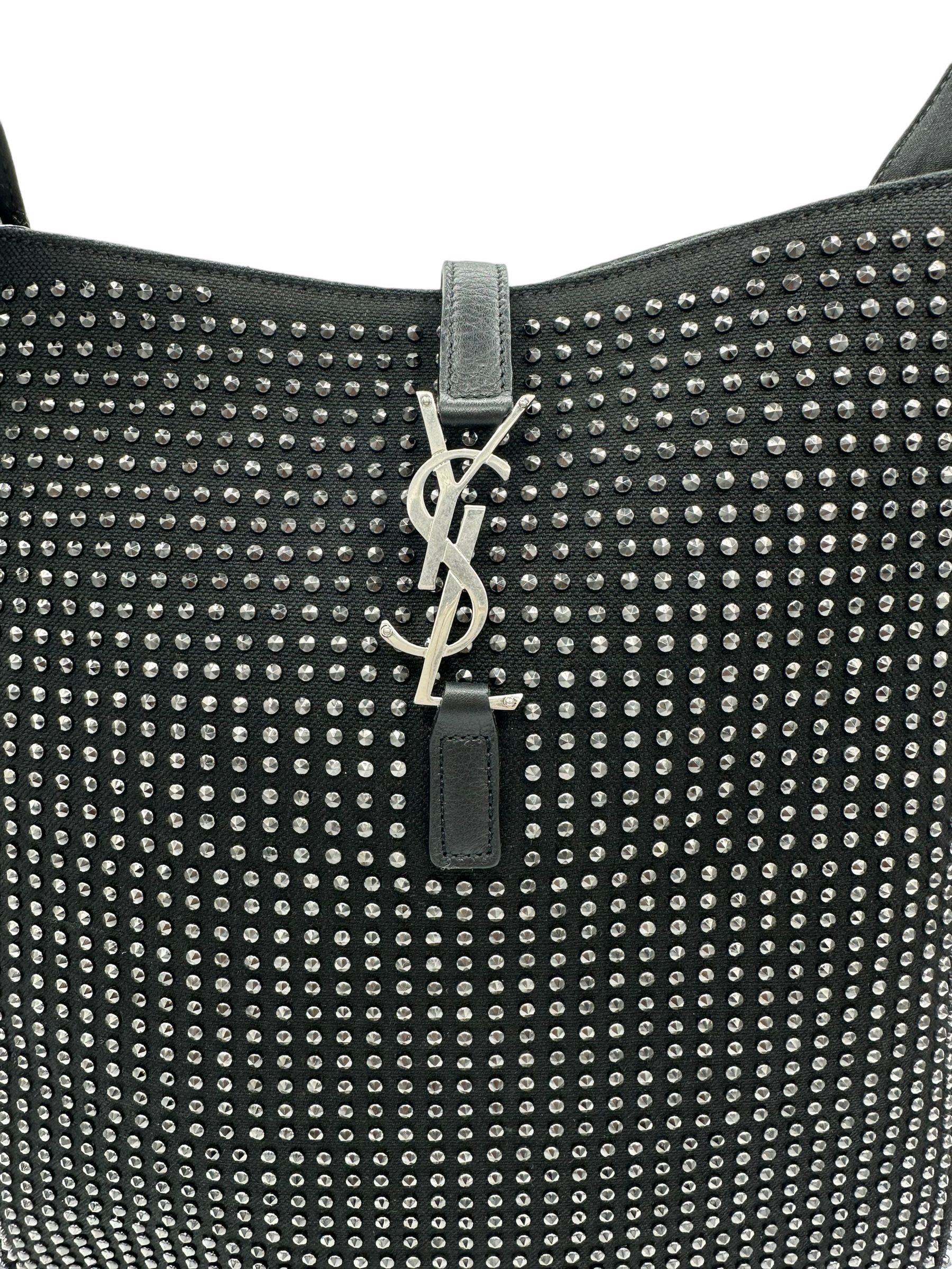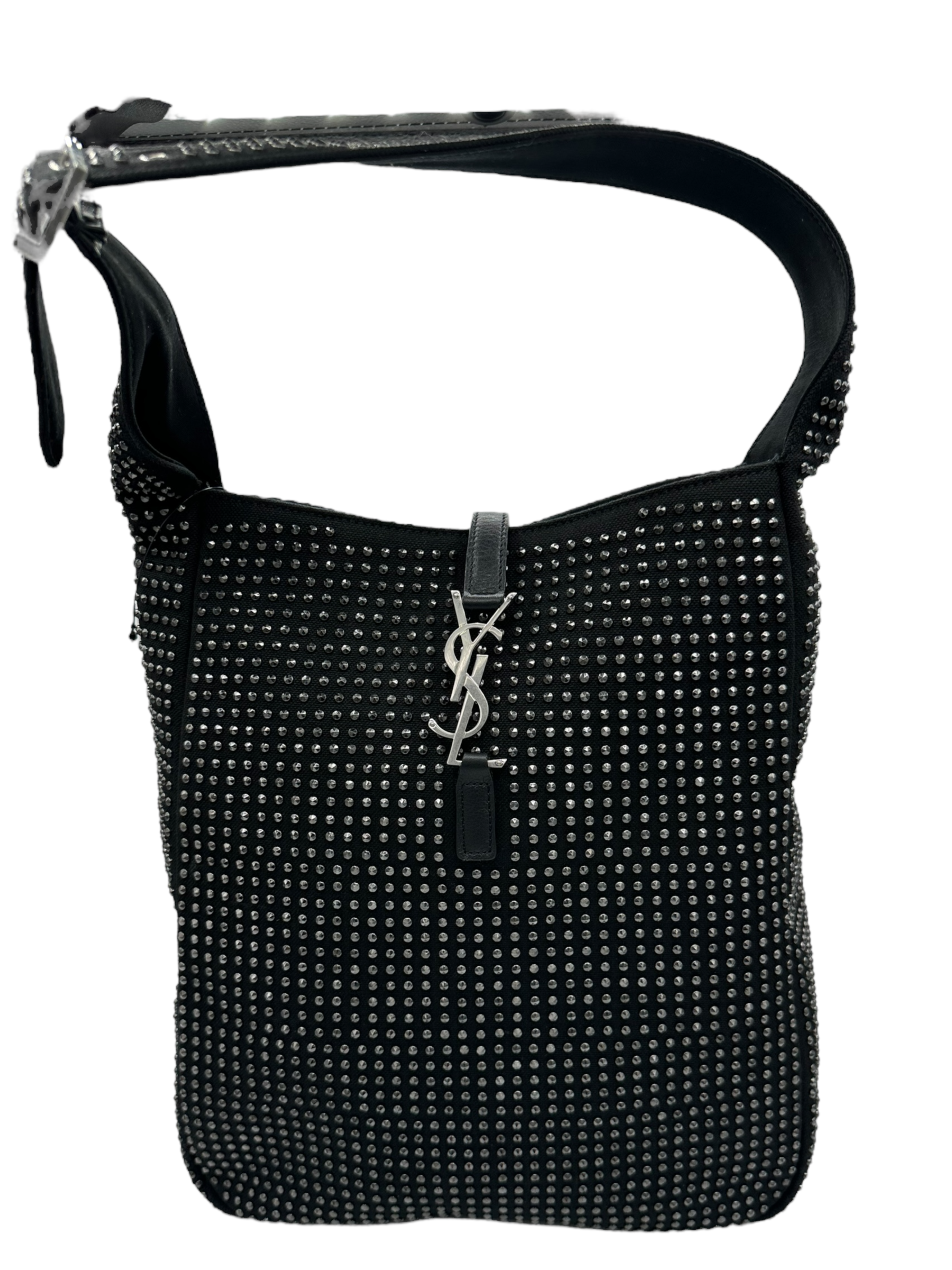 Indulge in luxury with the SAINT LAURENT Black Silver Le 5 a 7 Hobo Bag. In like new condition, this bag is perfect for any occasion. Elevate your style with its sleek design and make a statement wherever you go. Experience the ultimate in comfort and style with this must-have accessory.