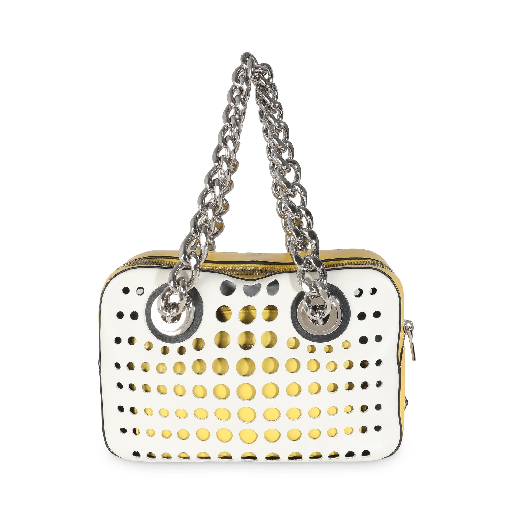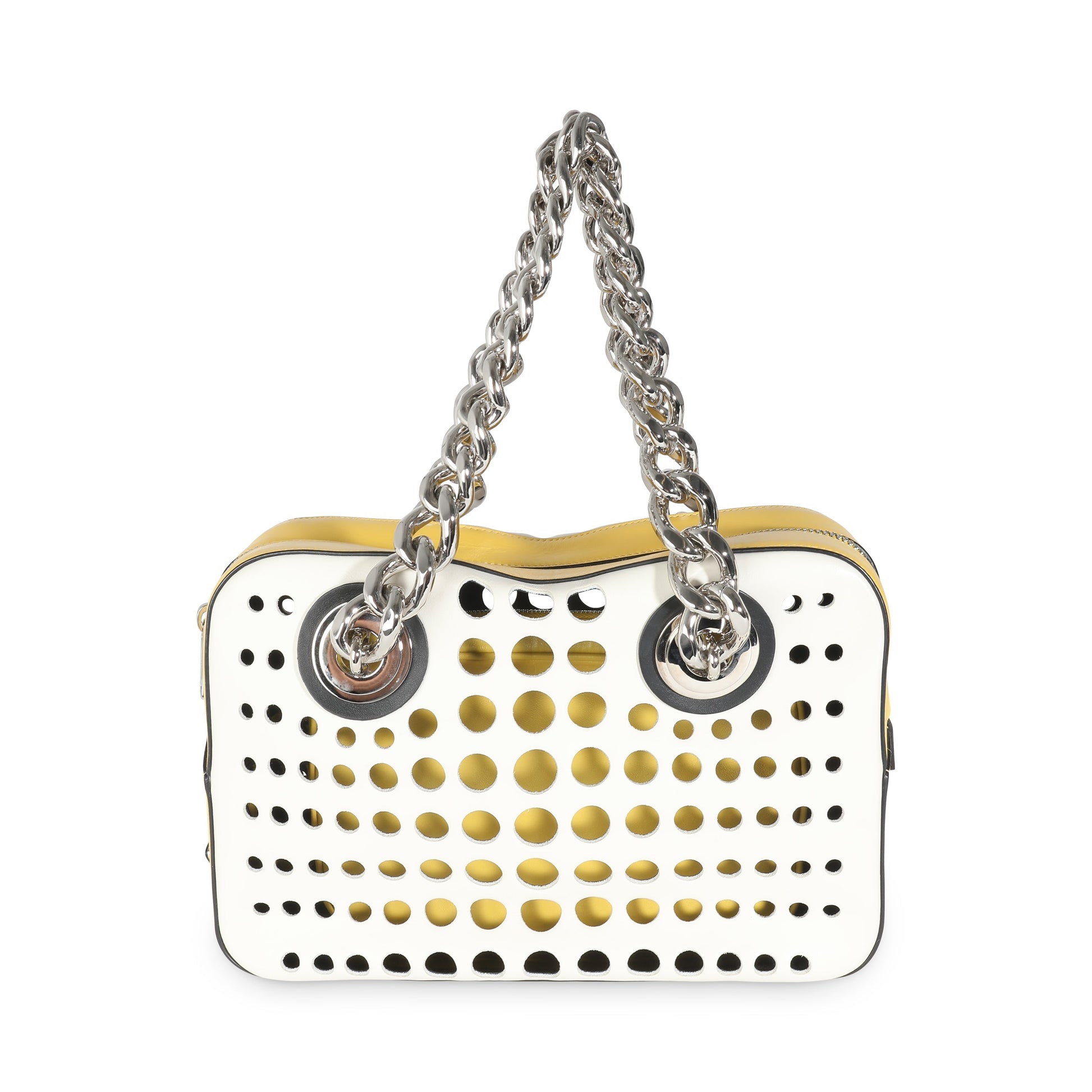 PRADA - White Yellow Calfskin City Fori Chain Bag