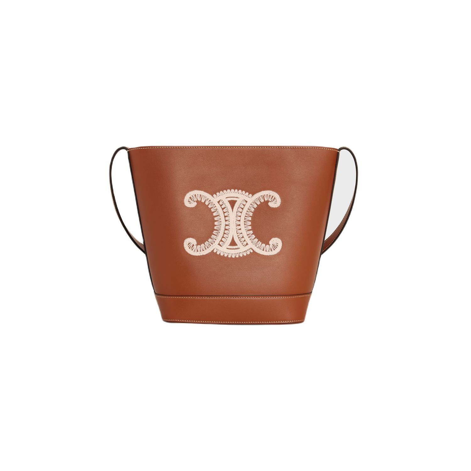 Celine Women's Small Cuir Triomphe Bucket Bag in Tan | 198243ES4