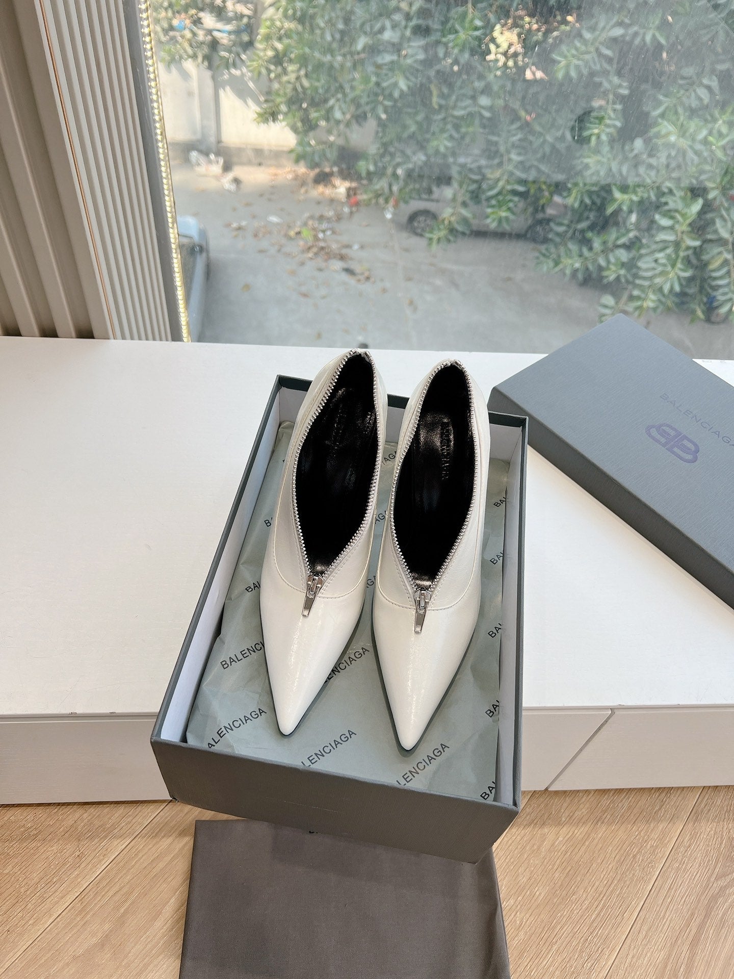 Balanciaga ZIPPER POINTED-TOE HIGH PUMPS IN WHITE WAX-OIL SHEEPSKIN